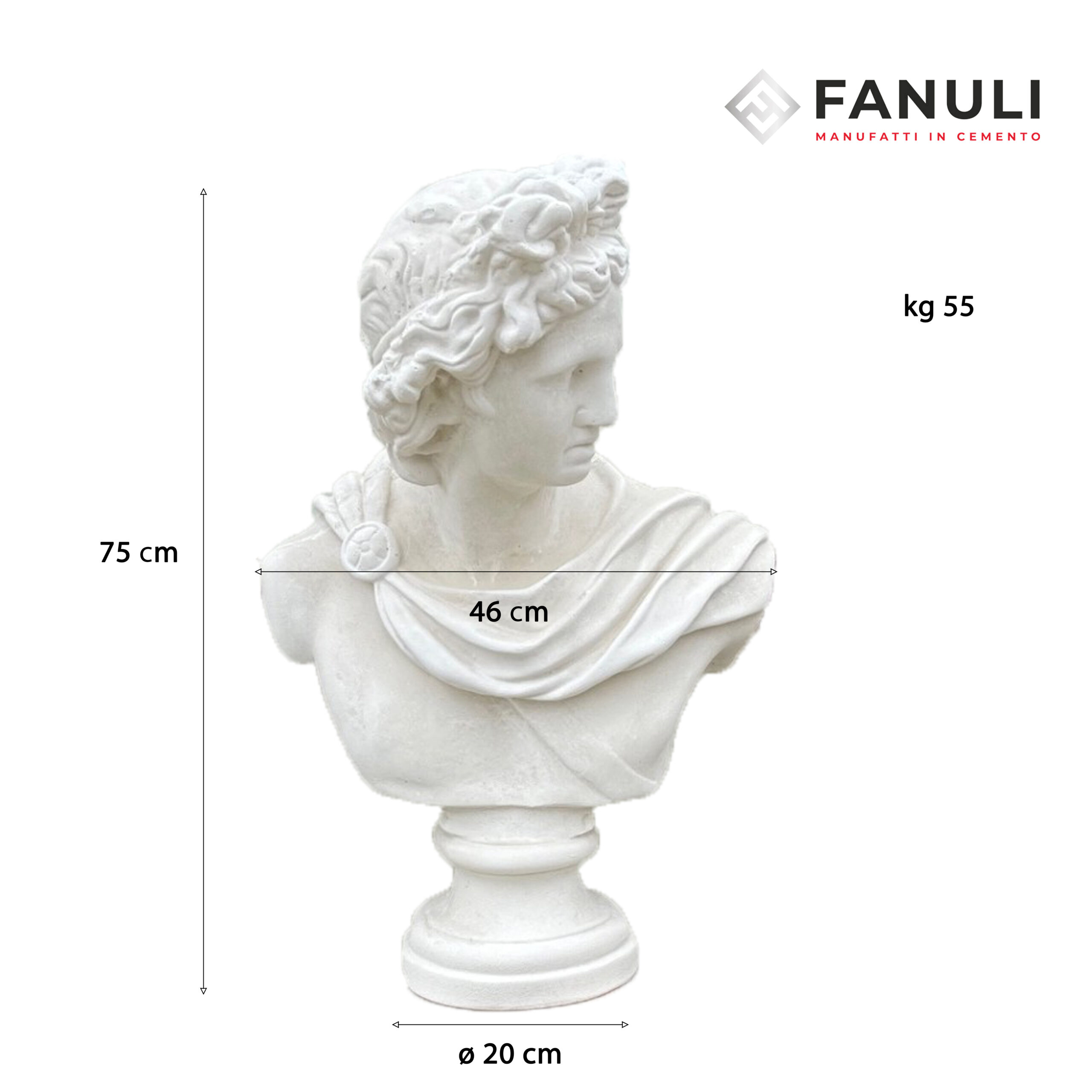 Porta nella tua vita l’eleganza e la maestosità dell’antica Grecia con il nostro splendido busto di Apollo, simbolo di bellezza, luce e armonia. Questo manufatto si adatta con stile a qualsiasi ambiente, dal più classico al più moderno, portando un tocco di eleganza e arte nella tua casa, villa, ufficio o giardino. Ideale anche come regalo raffinato per gli amanti dell’arte e della bellezza.