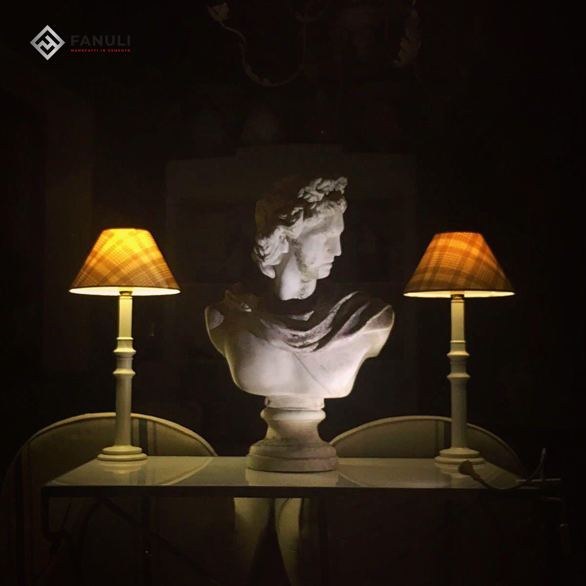 Busto di Apollo in cemento e polvere di marmo.