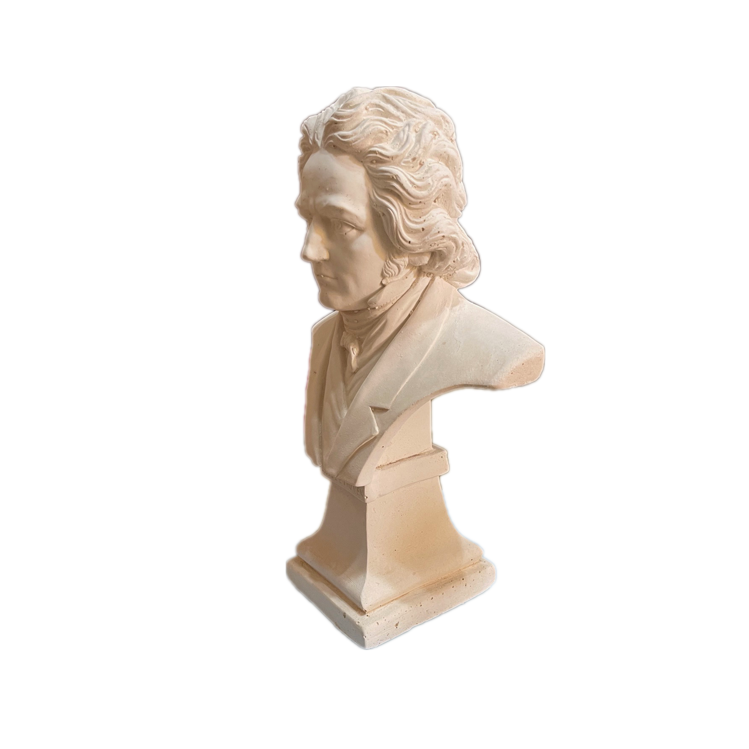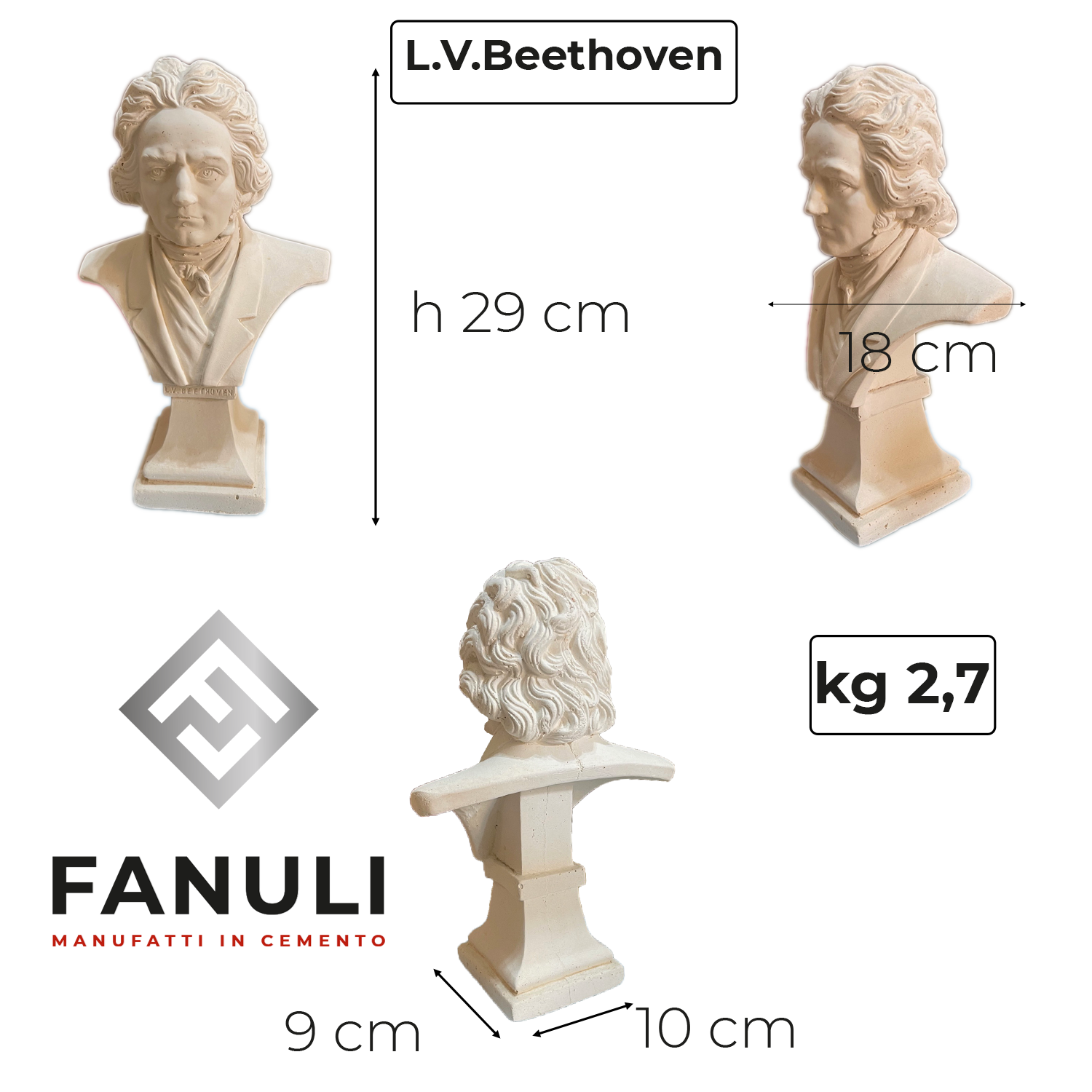 Arricchisci il tuo spazio con il busto di Ludwig van Beethoven, realizzato in cemento bianco di alta qualità. Con un’altezza di 29 cm, questa statua è perfetta per interni ed esterni.