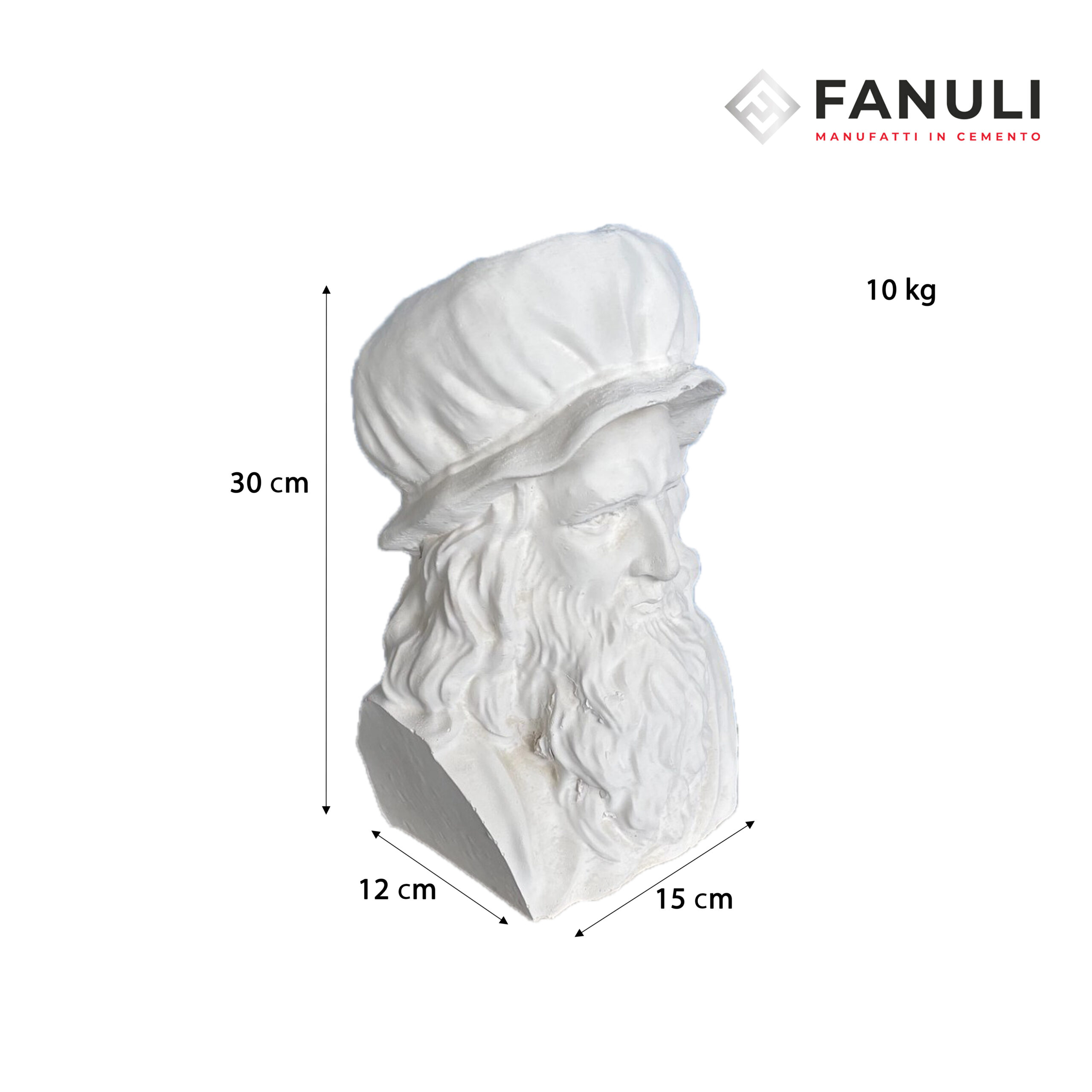 Busto “Leonardo Da Vinci” h 30 cm in cemento bianco