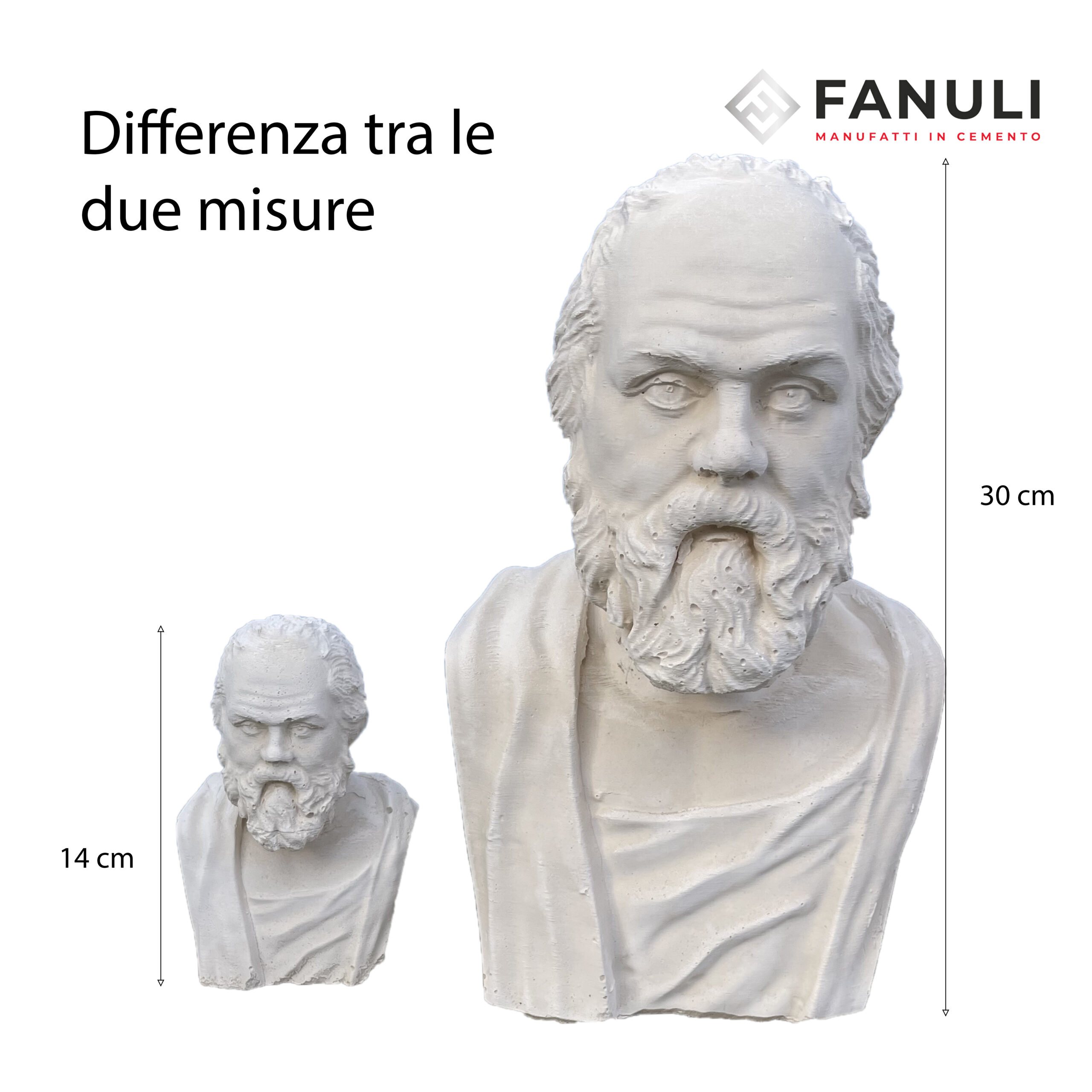 Scoprite la maestosità della filosofia con il nostro busto in cemento bianco del grande Socrate. Con un’altezza di 14 cm, questo capolavoro è ideale sia per interni che per esterni.