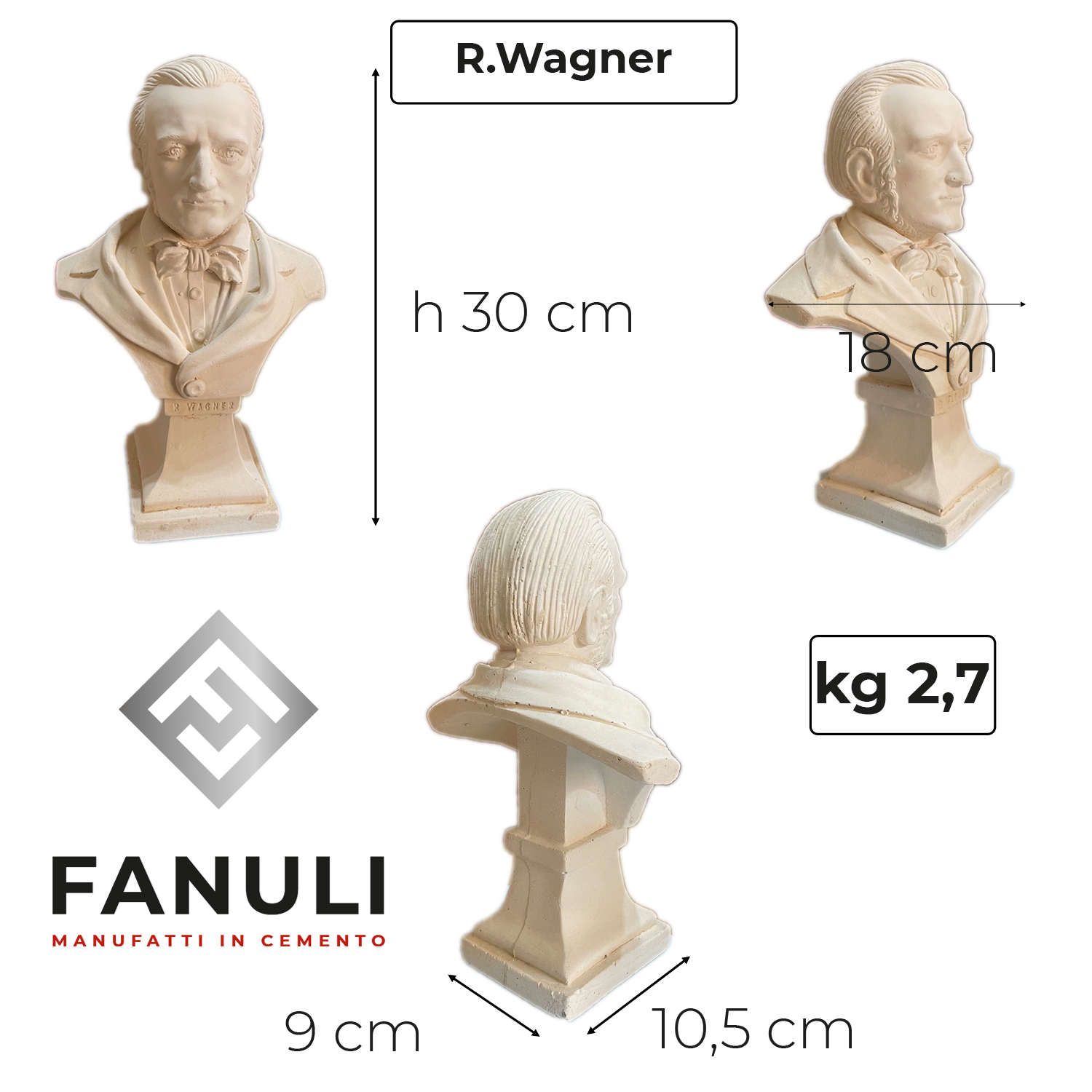 Arricchisci il tuo spazio con il busto di Richard Wagner, realizzato in cemento bianco di alta qualità. Con un’altezza di 30 cm, questa statua è perfetta per interni ed esterni.