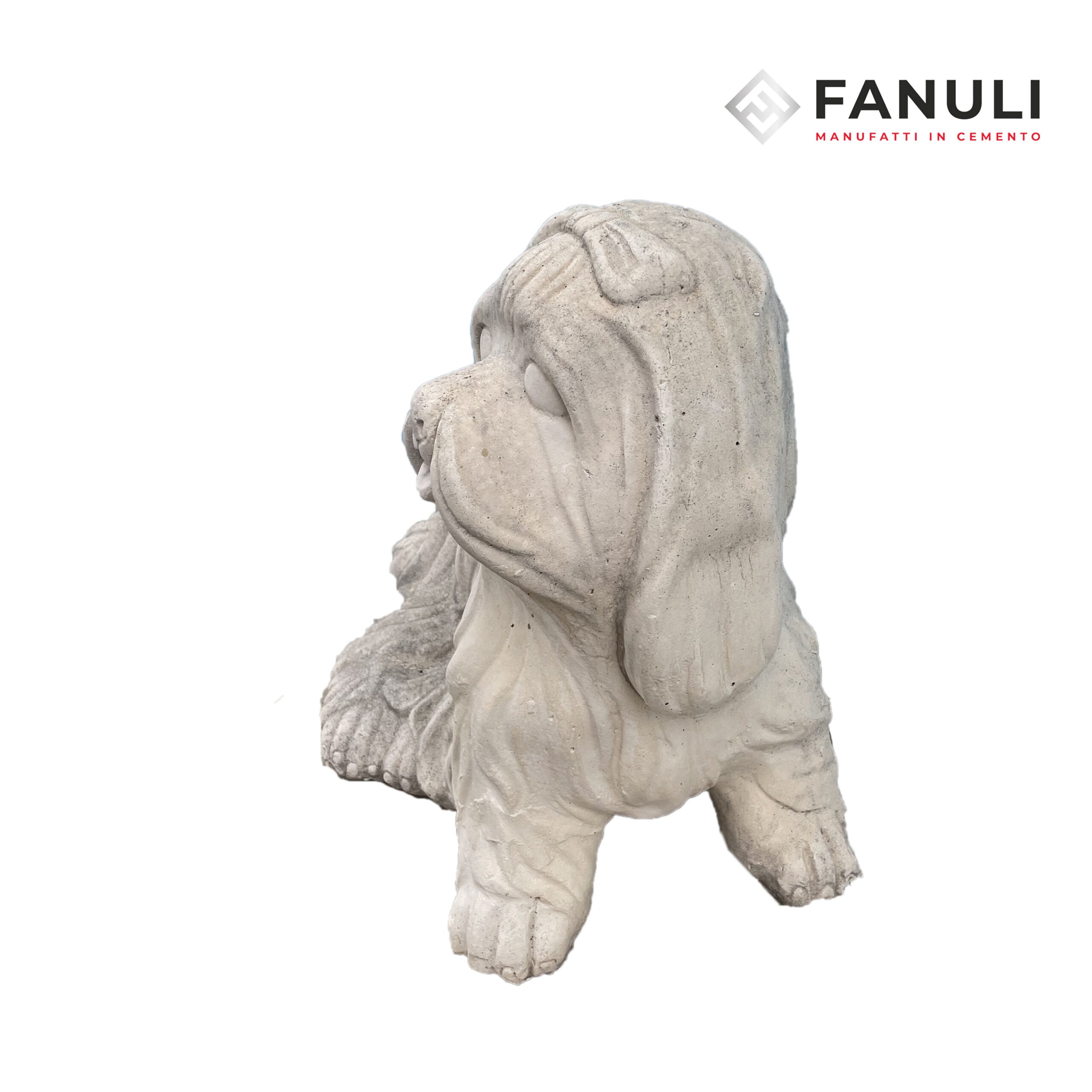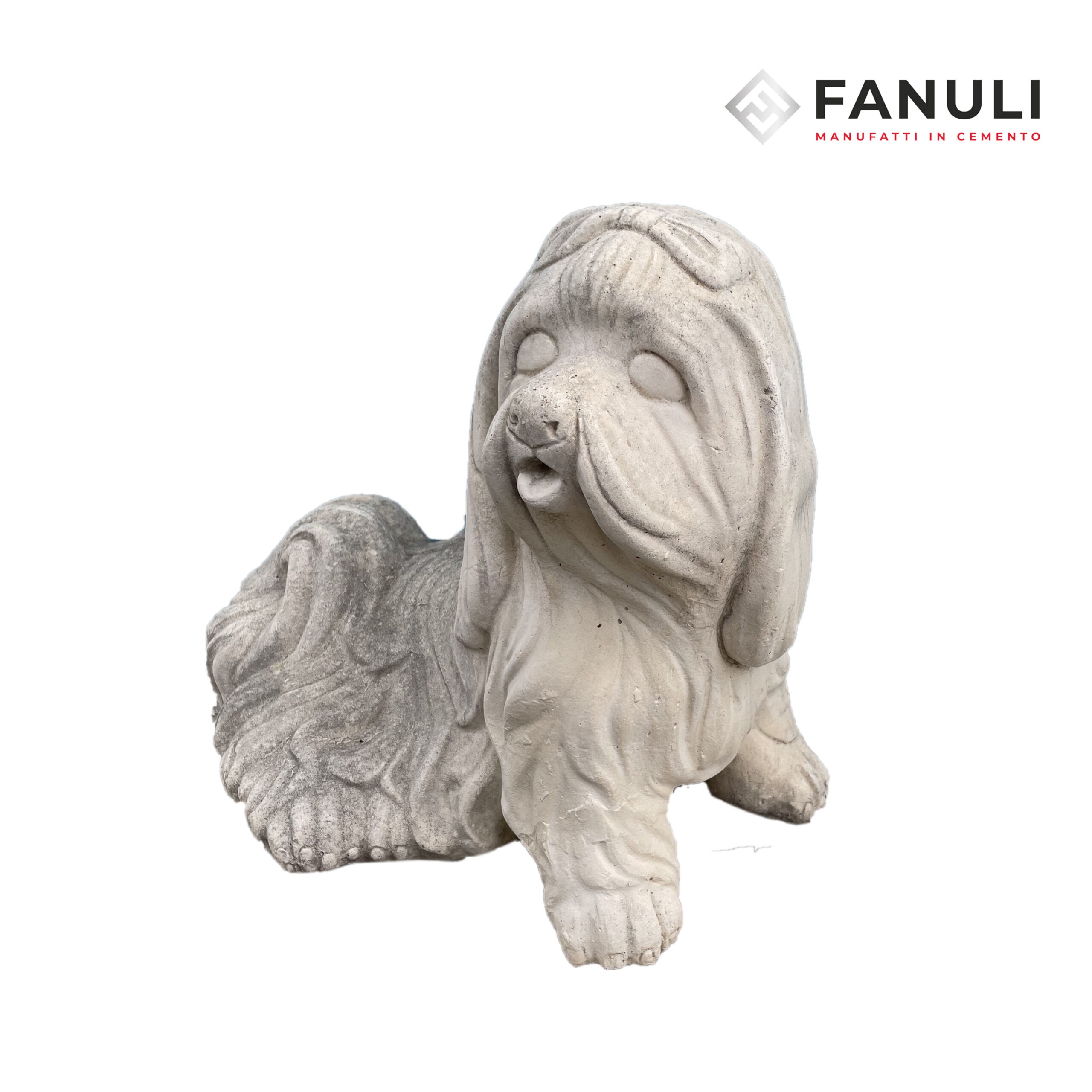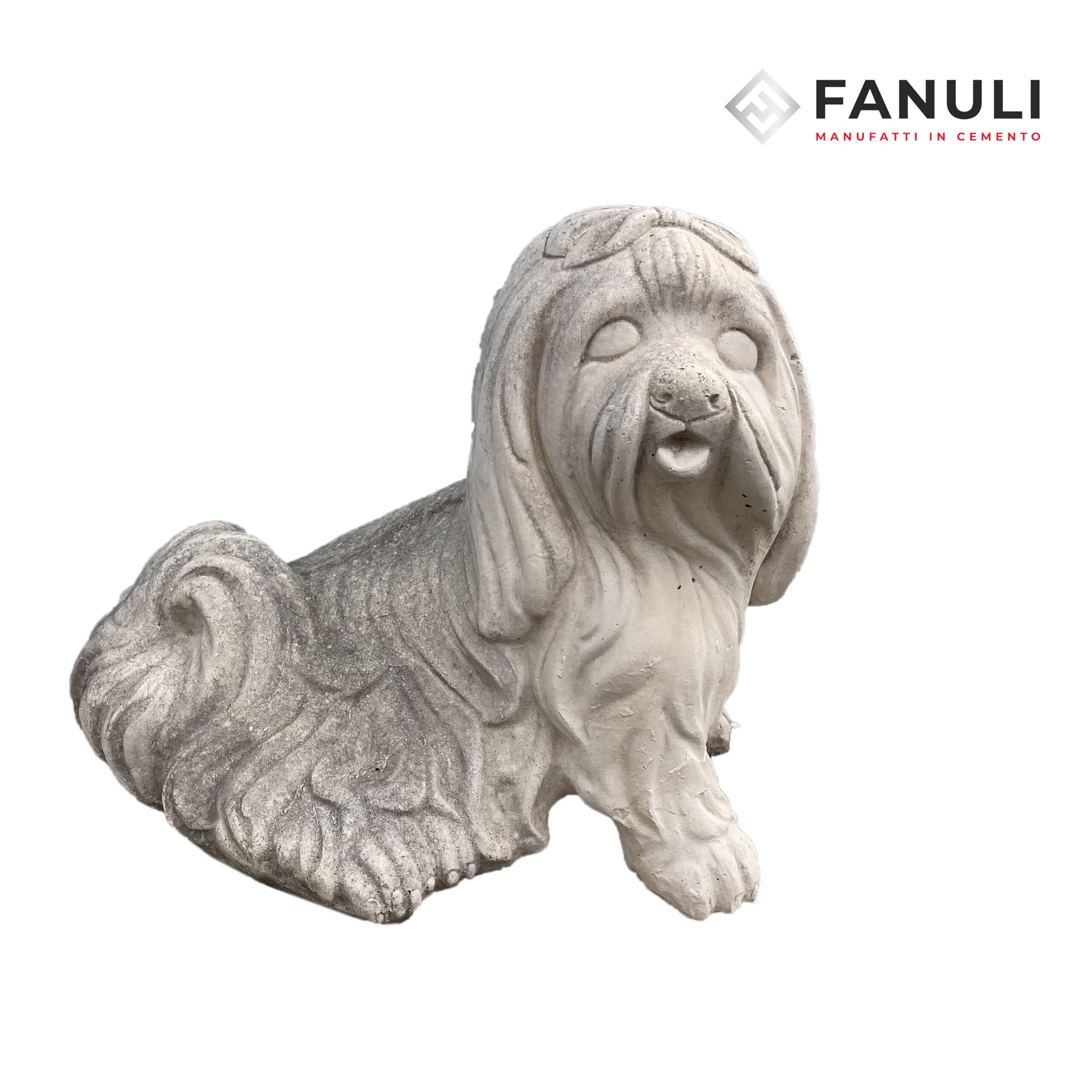 Statua cane maltese in cemento.