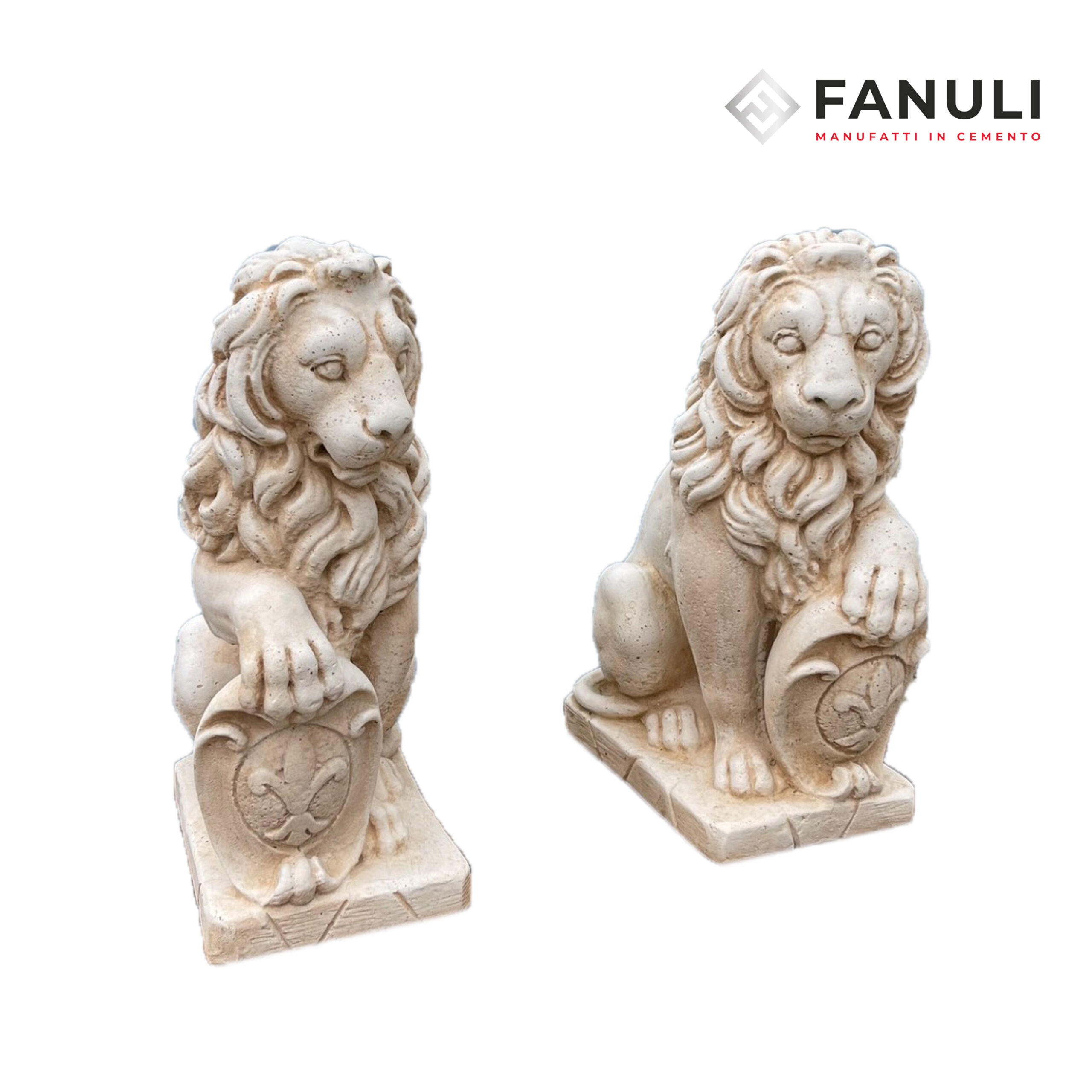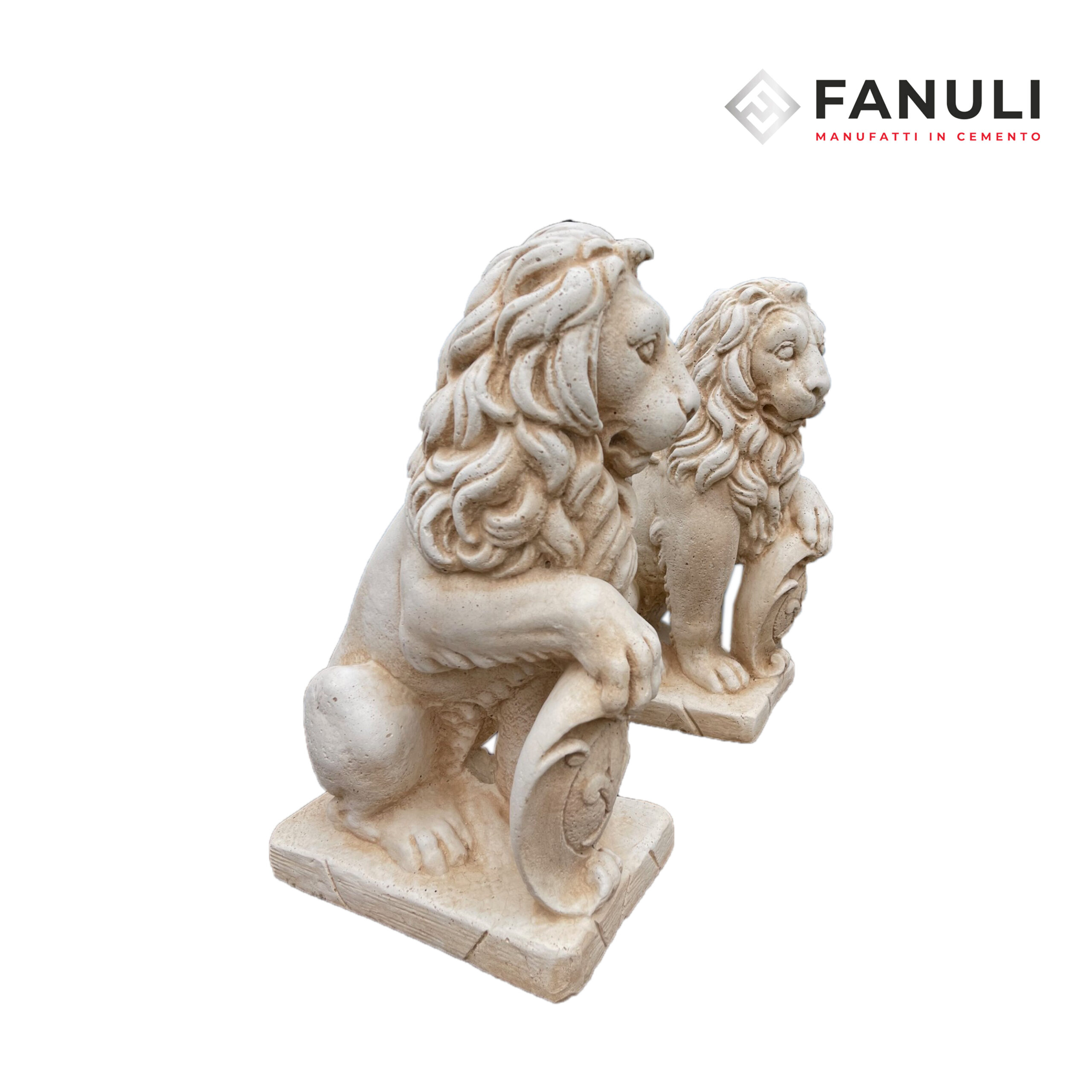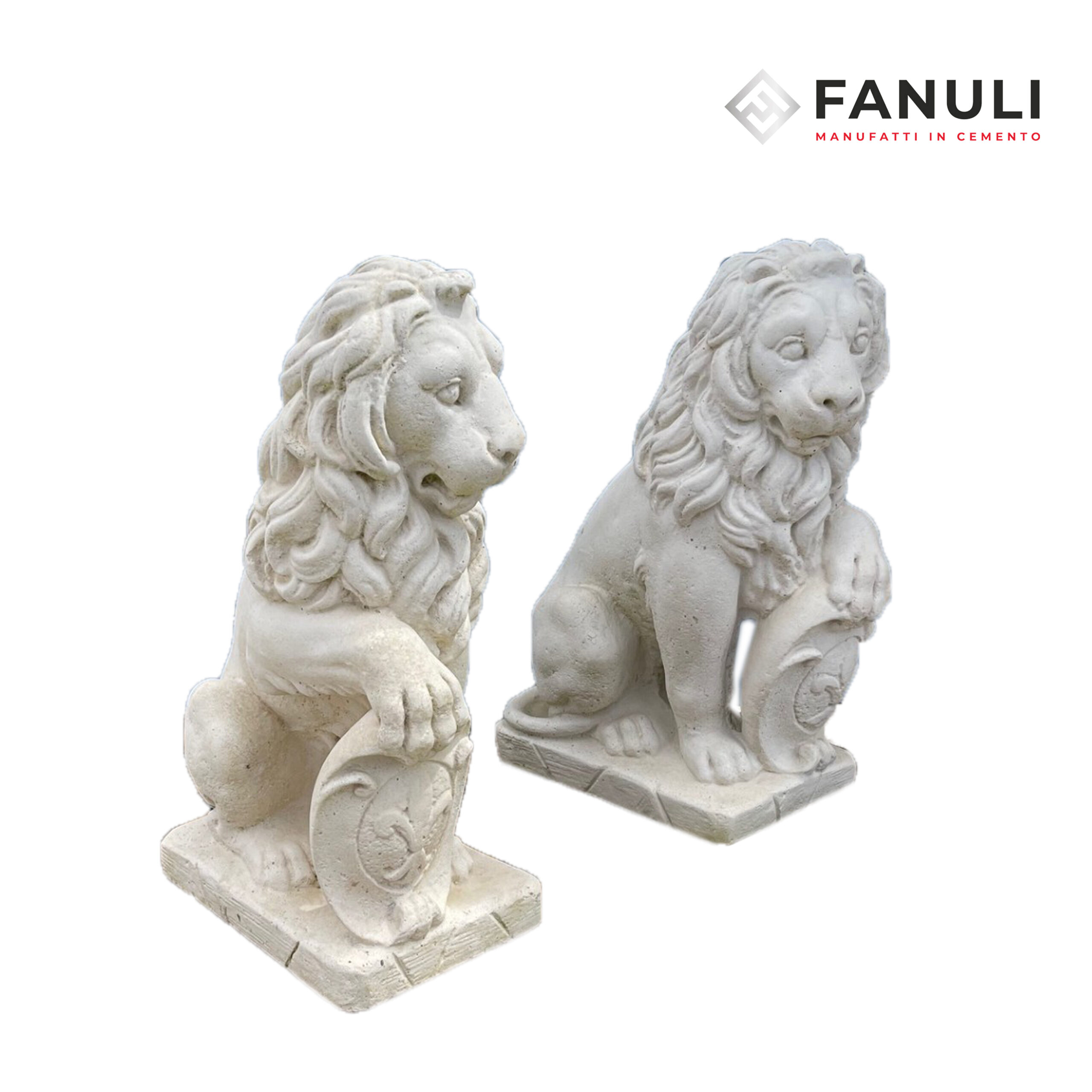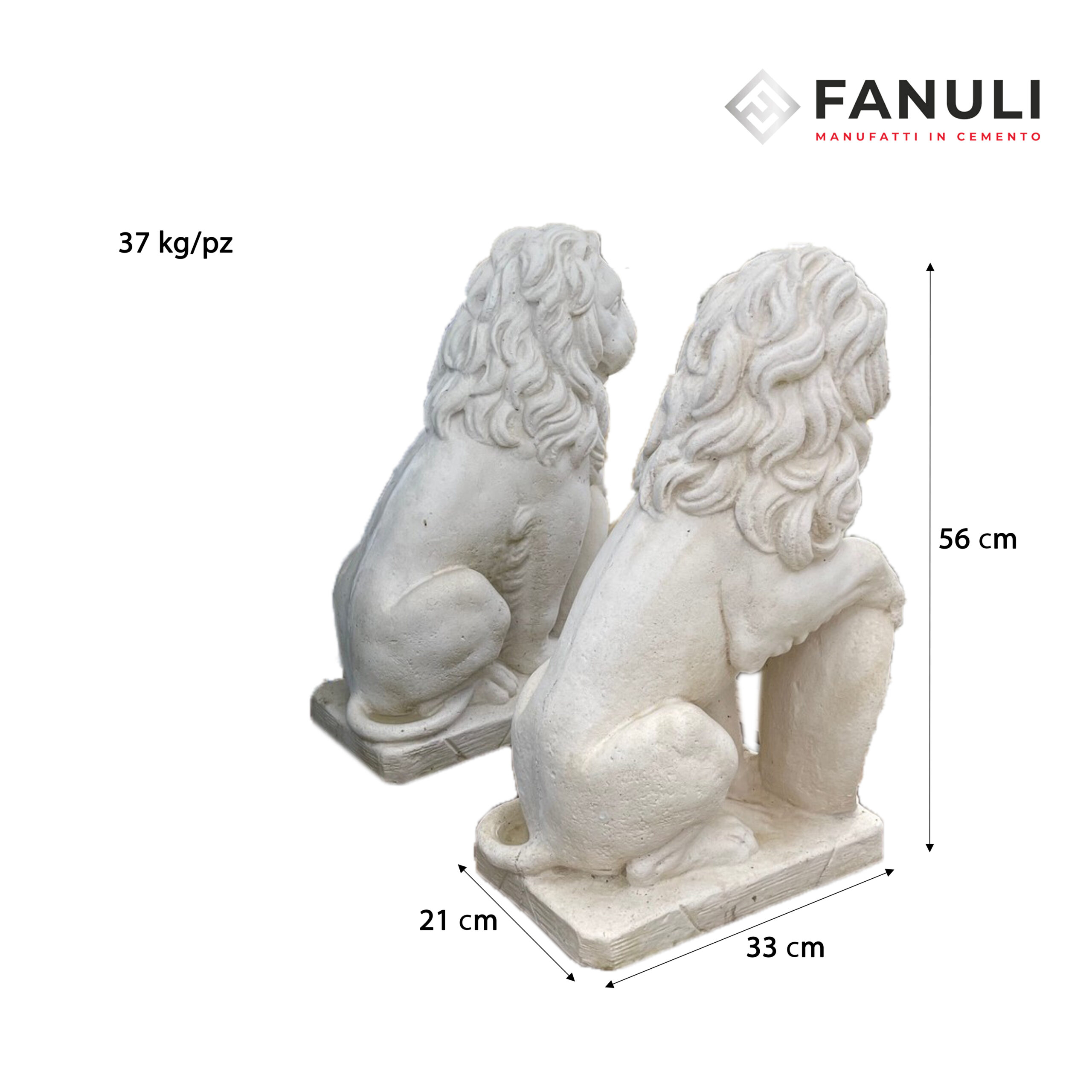 Lasciati conquistare dalla bellezza di questa coppia di leoni in cemento, studiata per valorizzare case, ville, giardini e ristoranti. Ogni statua, alta 56 cm e del peso di 37 kg, poggia su una solida base di 21 x 33 cm.