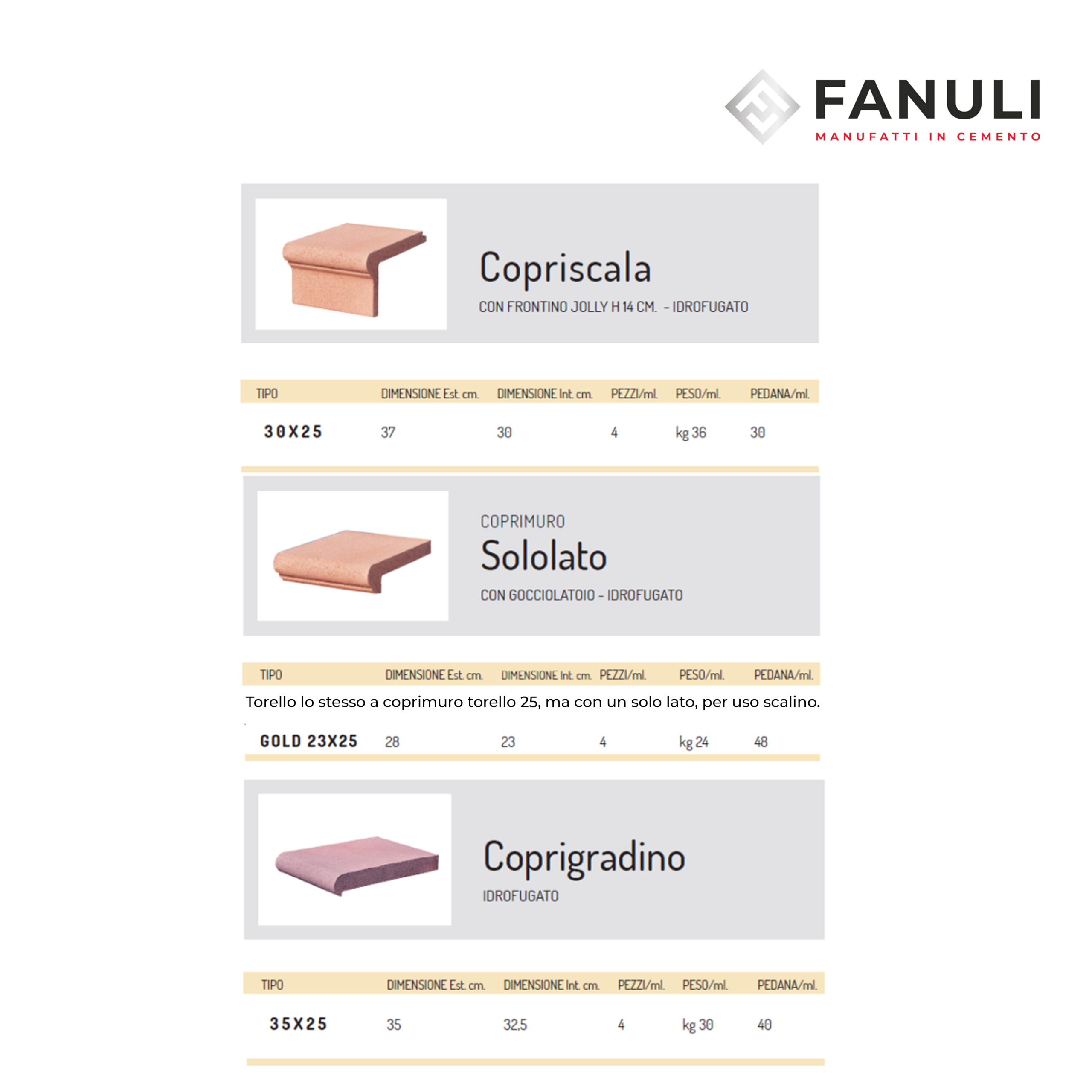 Produciamo copri scalini in cemento, nati per uso esterno, antiscivolo, il prezzo si riferisce a metro lineare (4 pezzi), per qualsiasi modello dei 3 elencati.