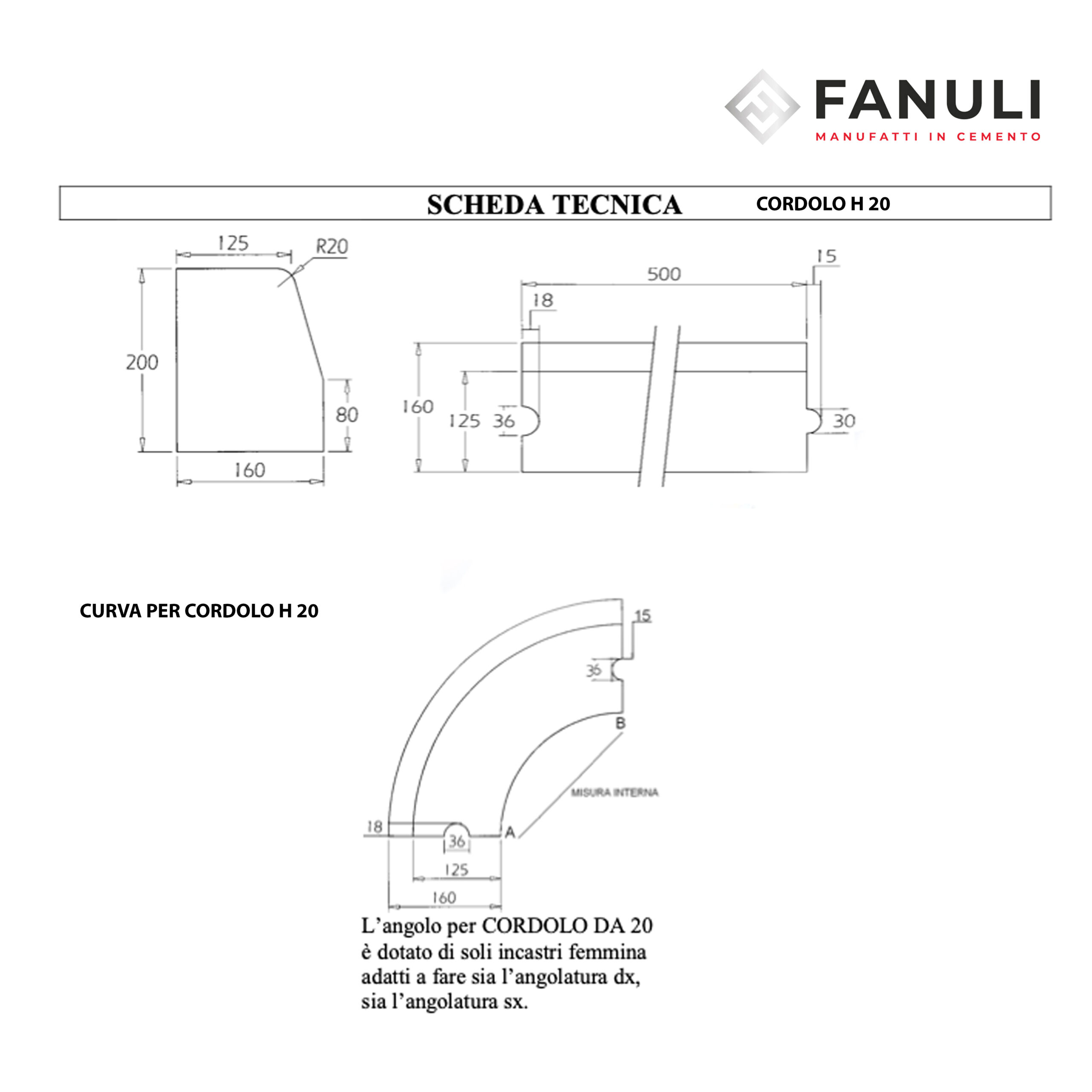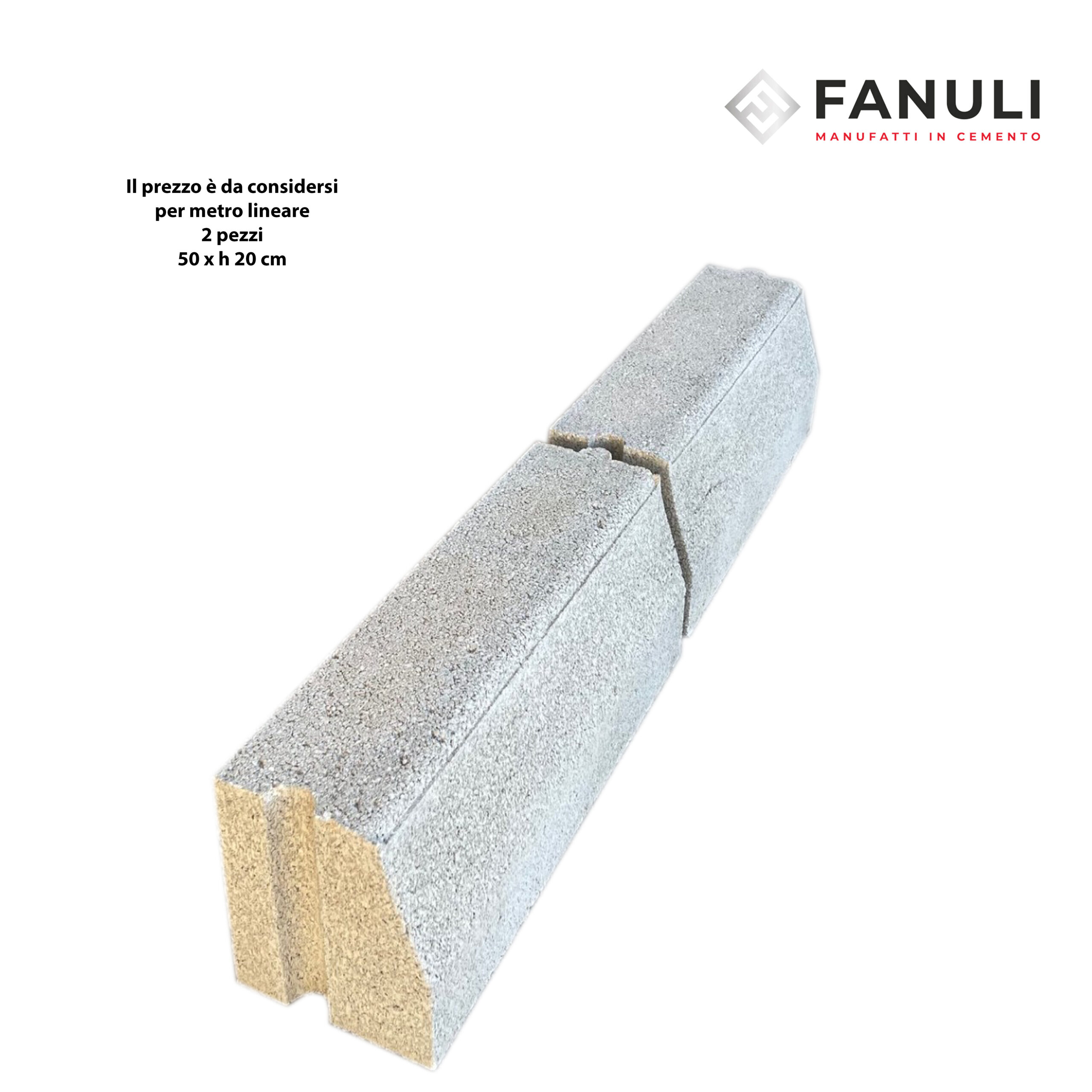 ideali per la delimitazione di marciapiedi e altre pavimentazioni. Ogni metro lineare è composto da 2 pezzi, ciascuno con un’altezza di 20 cm, garantendo robustezza e stabilità.