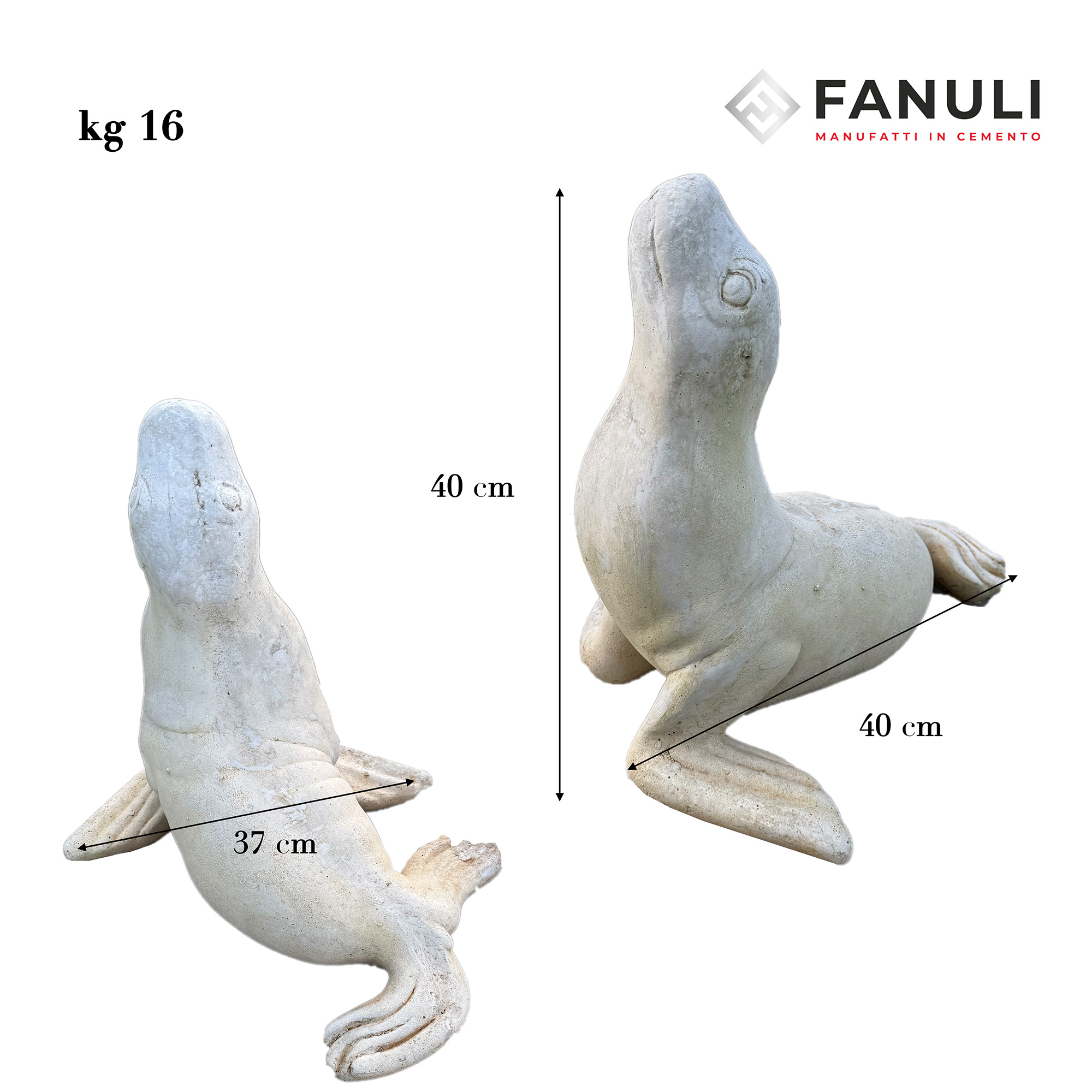 Manufatto artigianale Fanuli per arredo esterni e zone umide. Elegante scultura in cemento che ritrae una foca in posizione dinamica, perfetta per decorare bordi piscina, laghetti, fontane o giardini a tema marino. Realizzata con materiali ad alta resistenza, questa statua garantisce una durata eccellente contro pioggia, gelo e raggi UV, mantenendo stabilità grazie al suo peso consistente.