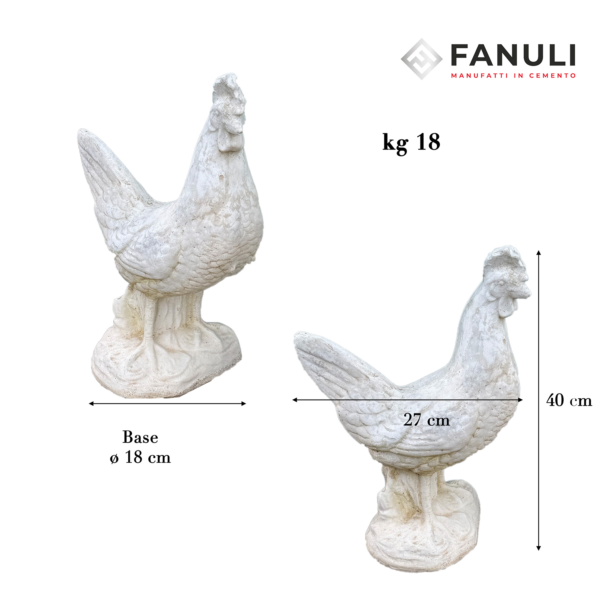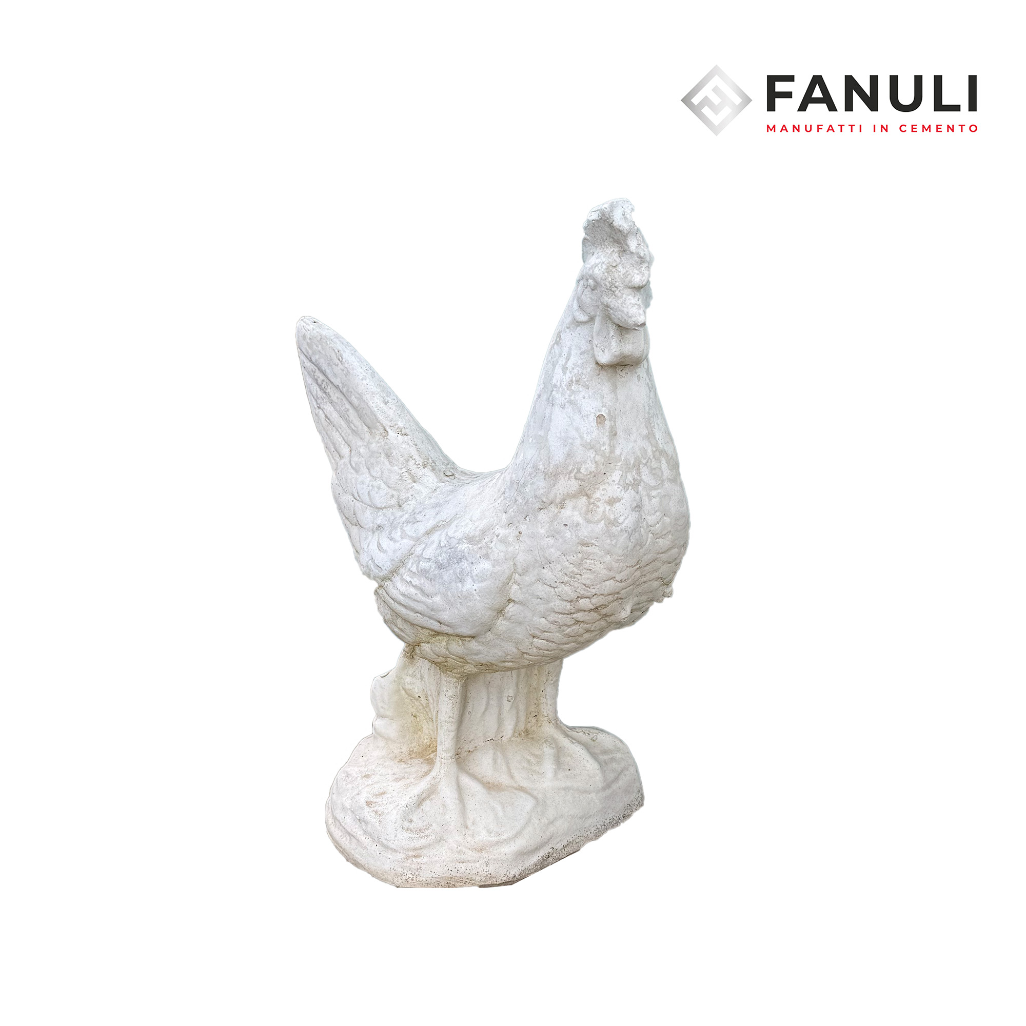 Manufatto artigianale Fanuli per l’arredo di cortili e giardini. Statua ornamentale realizzata in cemento compatto, estremamente resistente alle intemperie e al gelo. Questa riproduzione, curata nei dettagli del piumaggio, è perfetta per decorare spazi esterni, porticati o cucine rustiche, garantendo stabilità e durata nel tempo grazie al materiale di alta qualità.