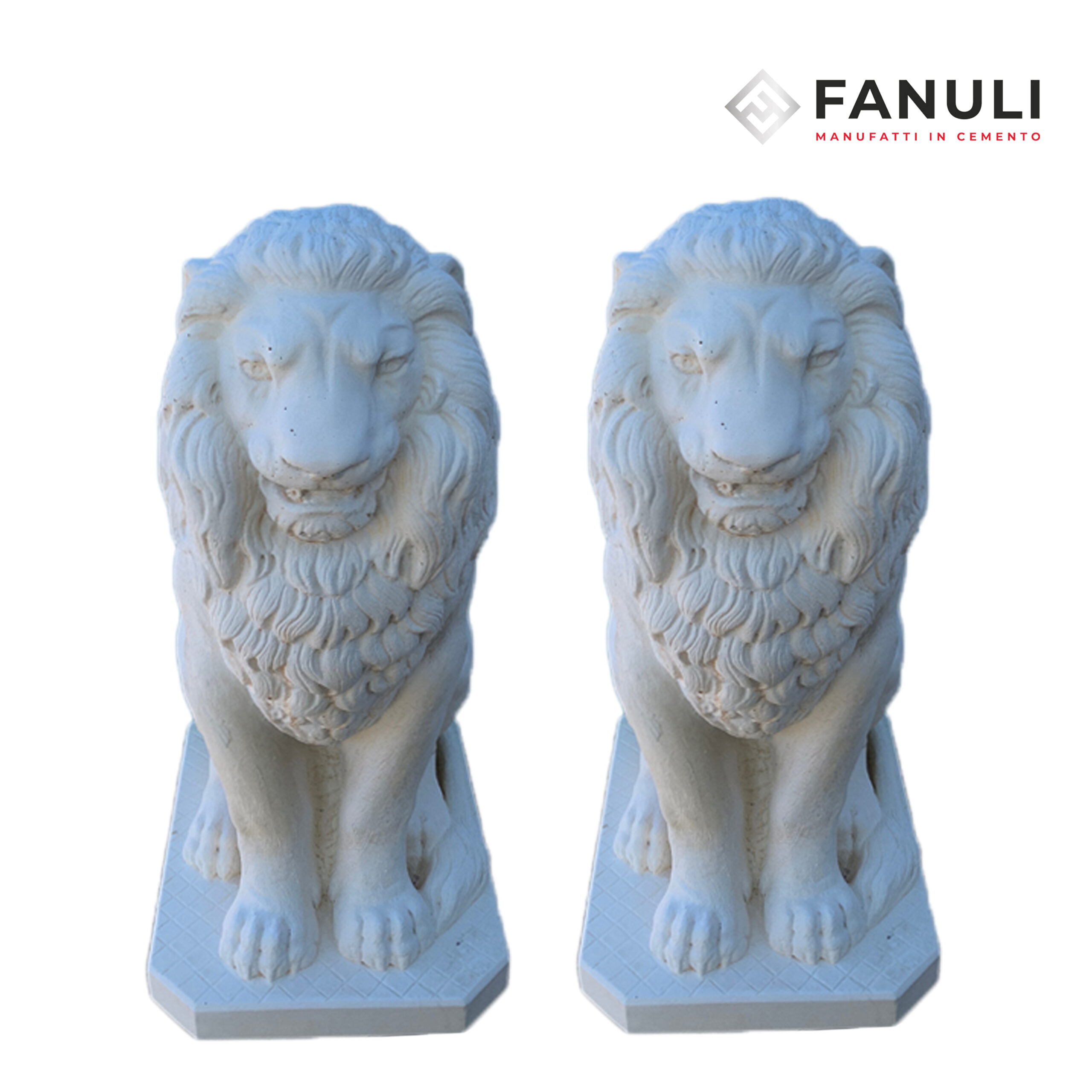 Coppia di Leoni, mod. “LEONE MUSTAFA H82” in cemento bianco e polvere di marmo, resistenti a tutte le intemperie.