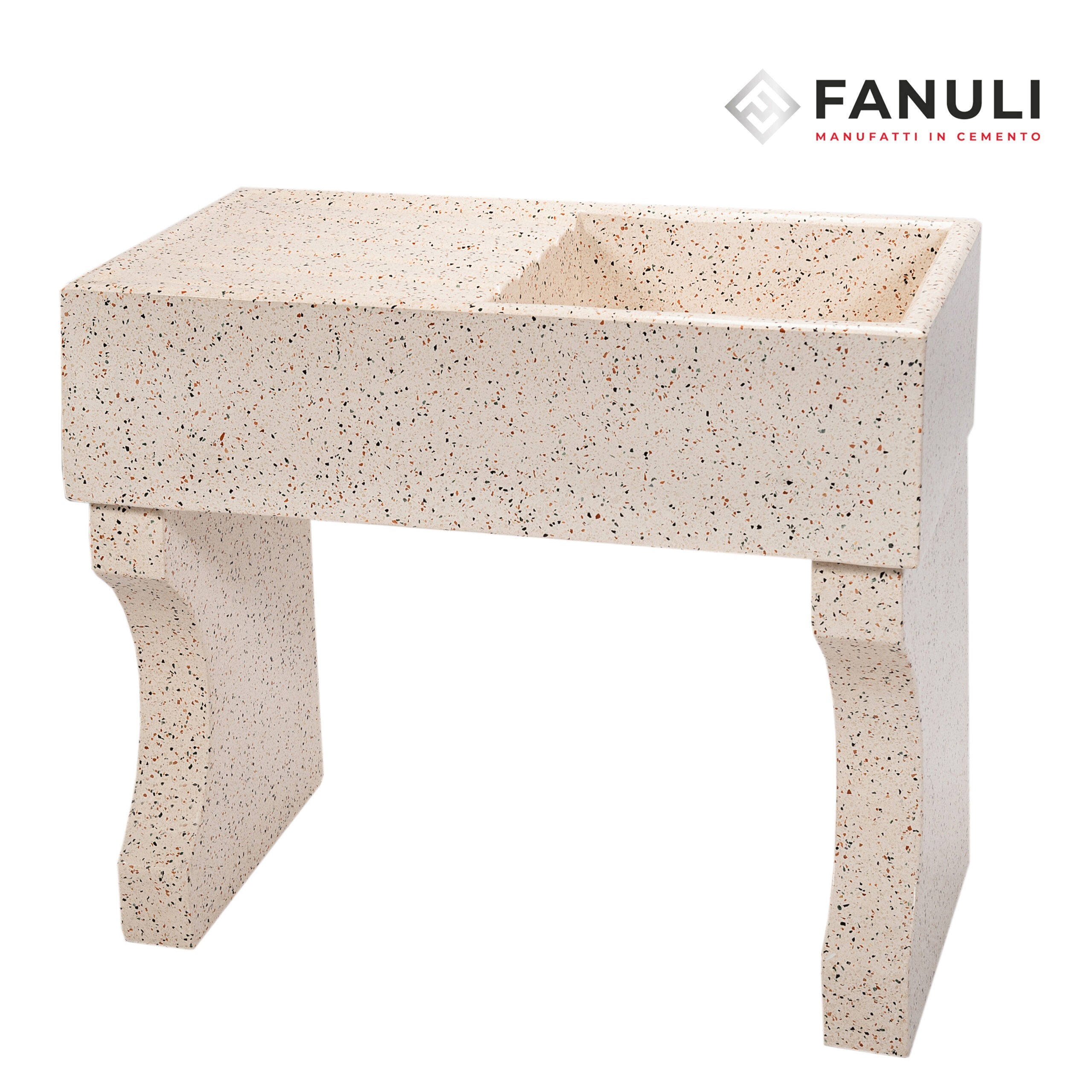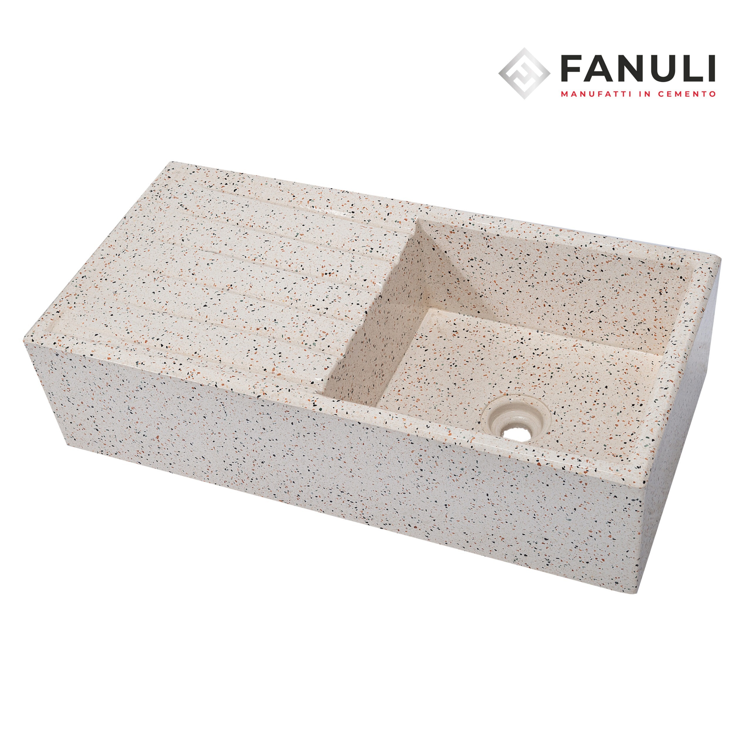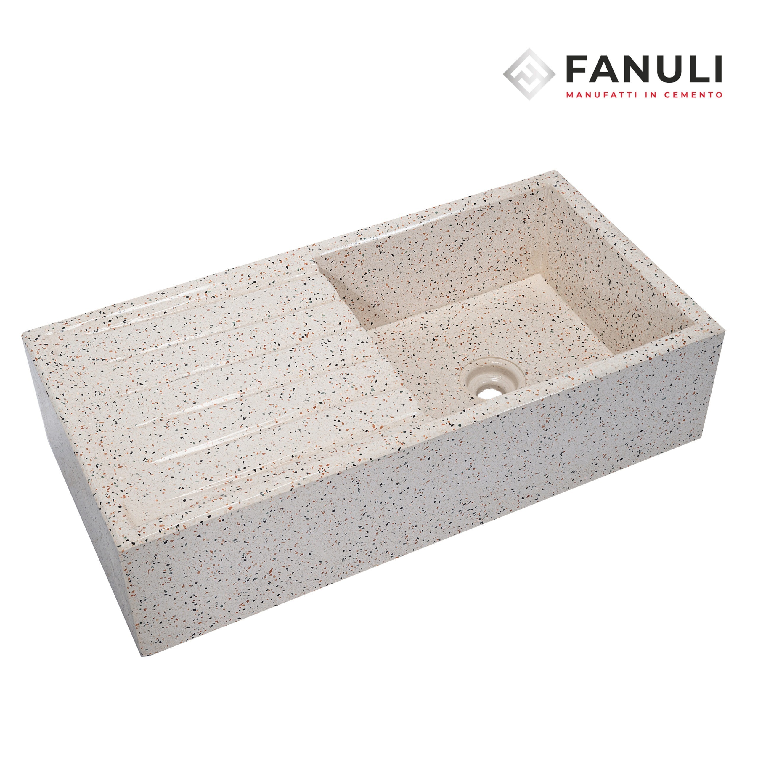Stile semplice e tradizionale come si usavano nel Bucatoio ma allo stesso tempo elegante grazie alla parte ribassata frontale, realizzato da un’agglomerato forte e duraturo di cemento bianco tipo 5.25, graniglia di marmo(personalizzando i colori a piacere) e polvere di marmo.