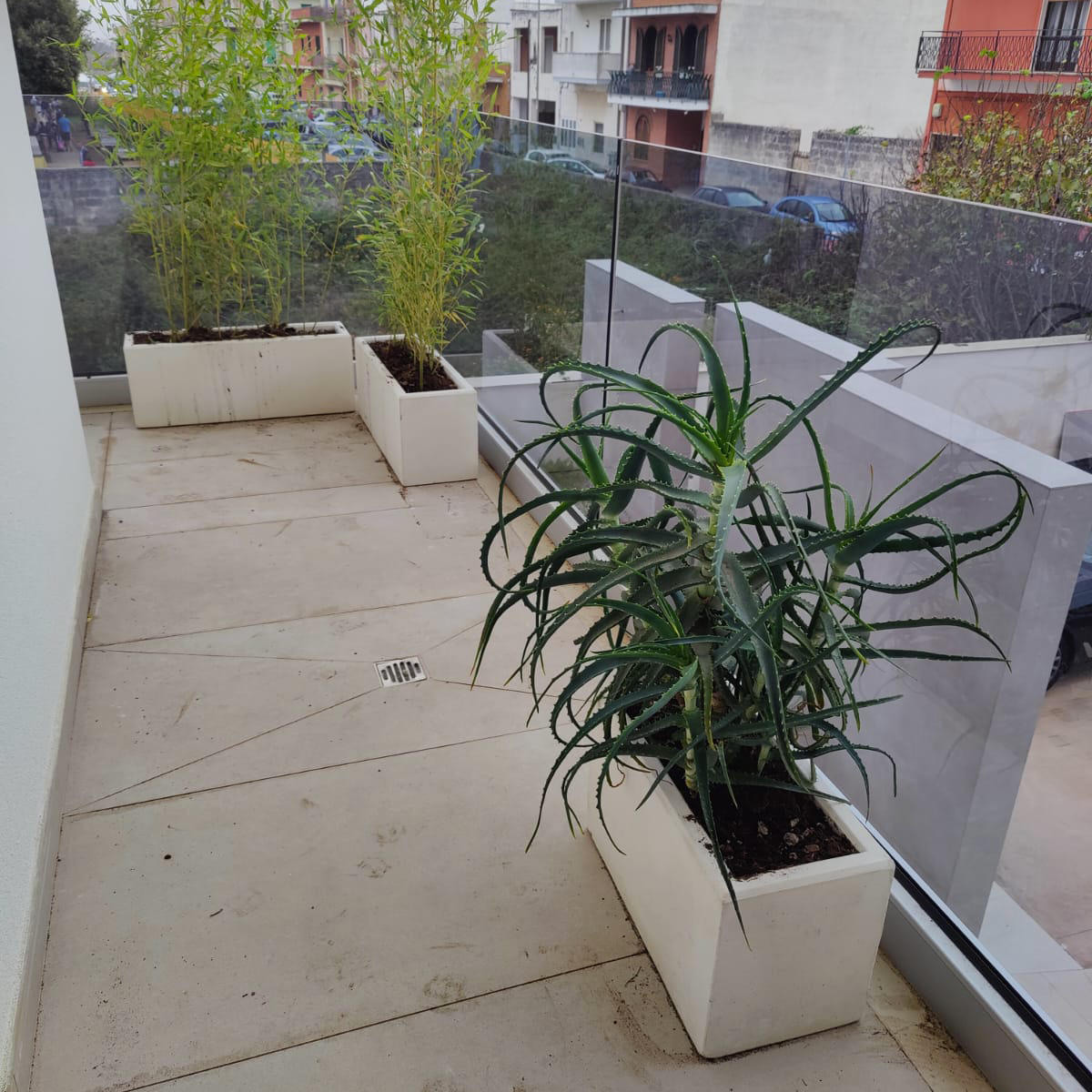 Vaso Pinnetta: l’eleganza del cemento bianco liscio, con un design minimalista.  Perfetto per delimitare muri, balconi e terrazzi.