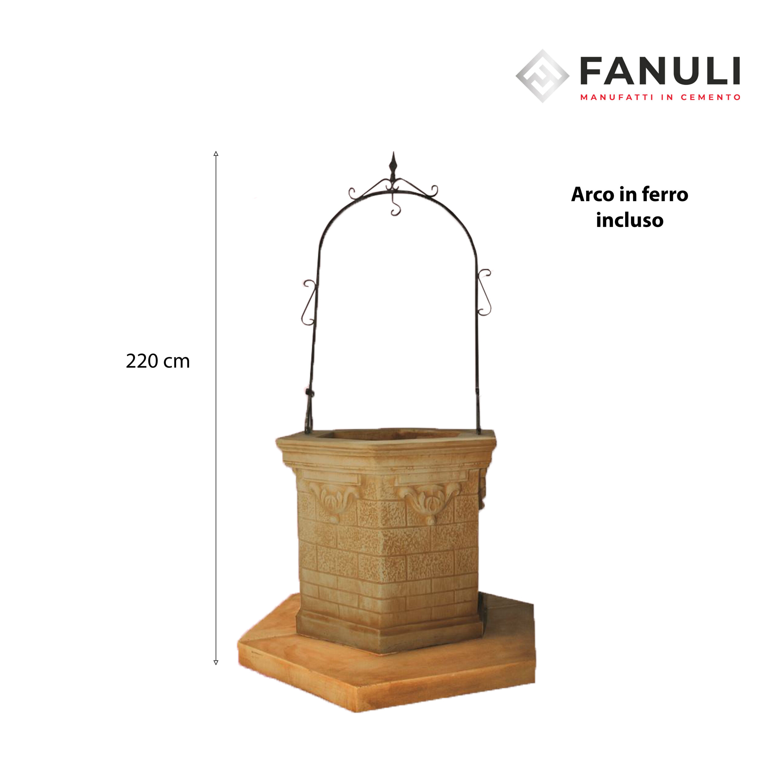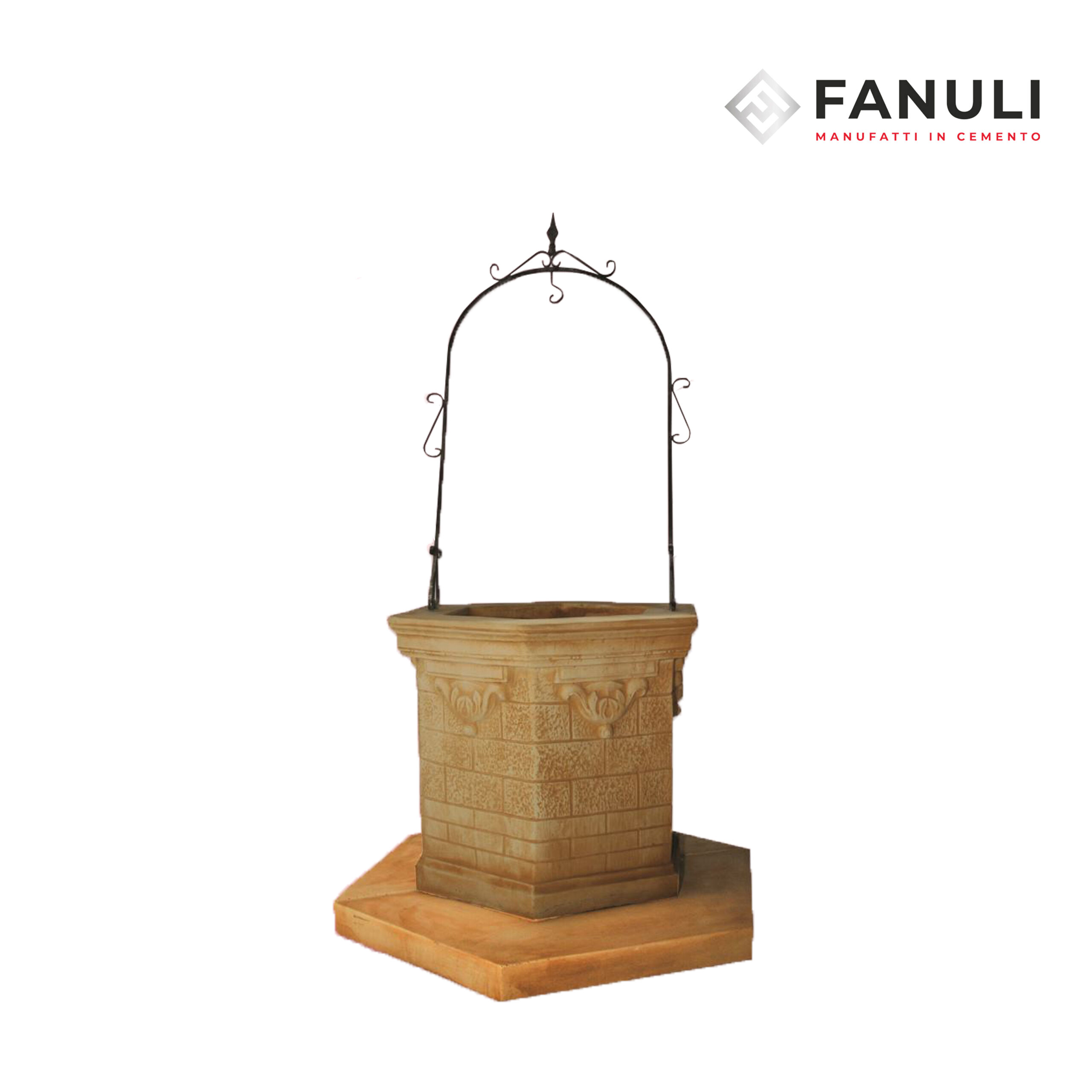 Pozzo Assisi in cemento bianco color nocciola h 220, boccale esagonale.
