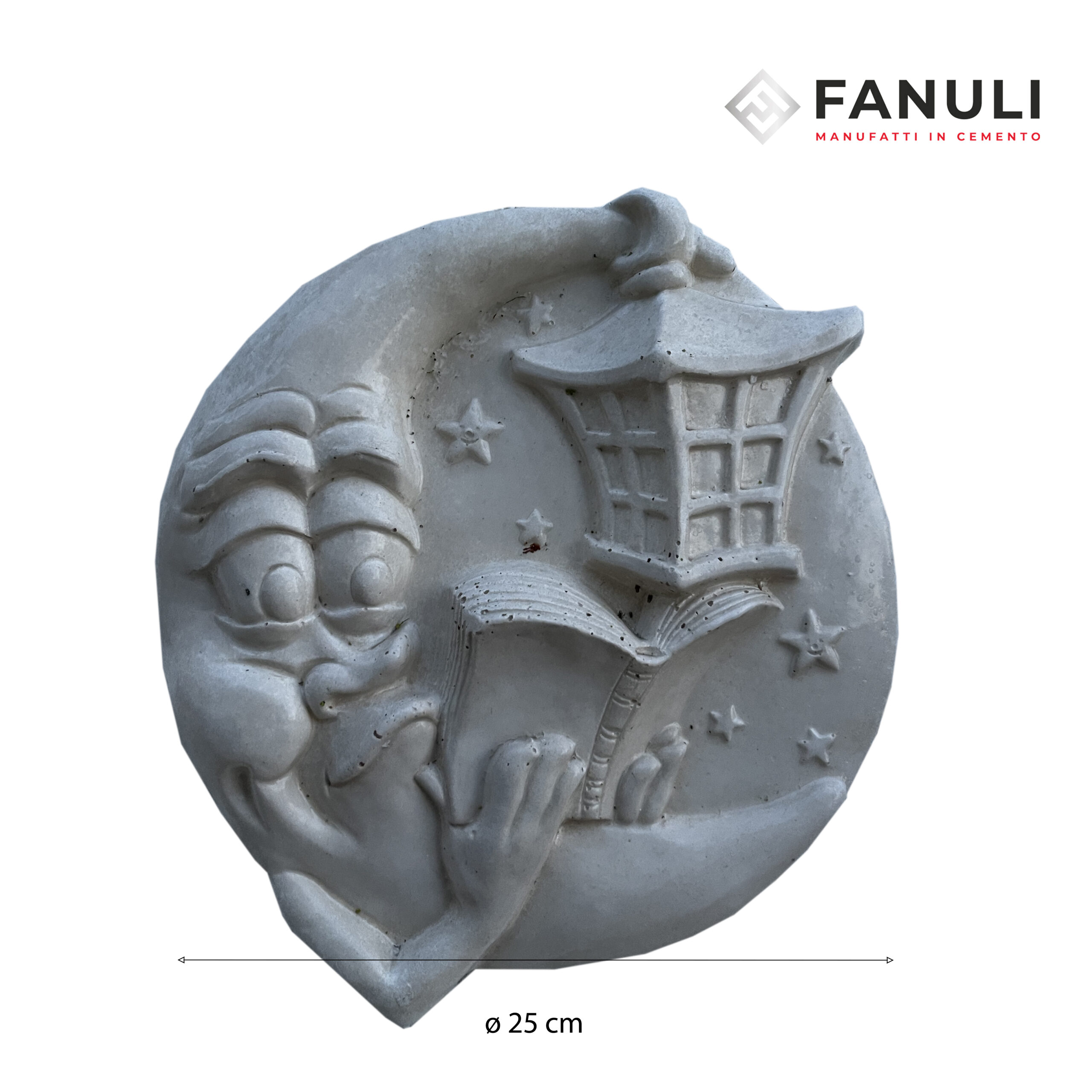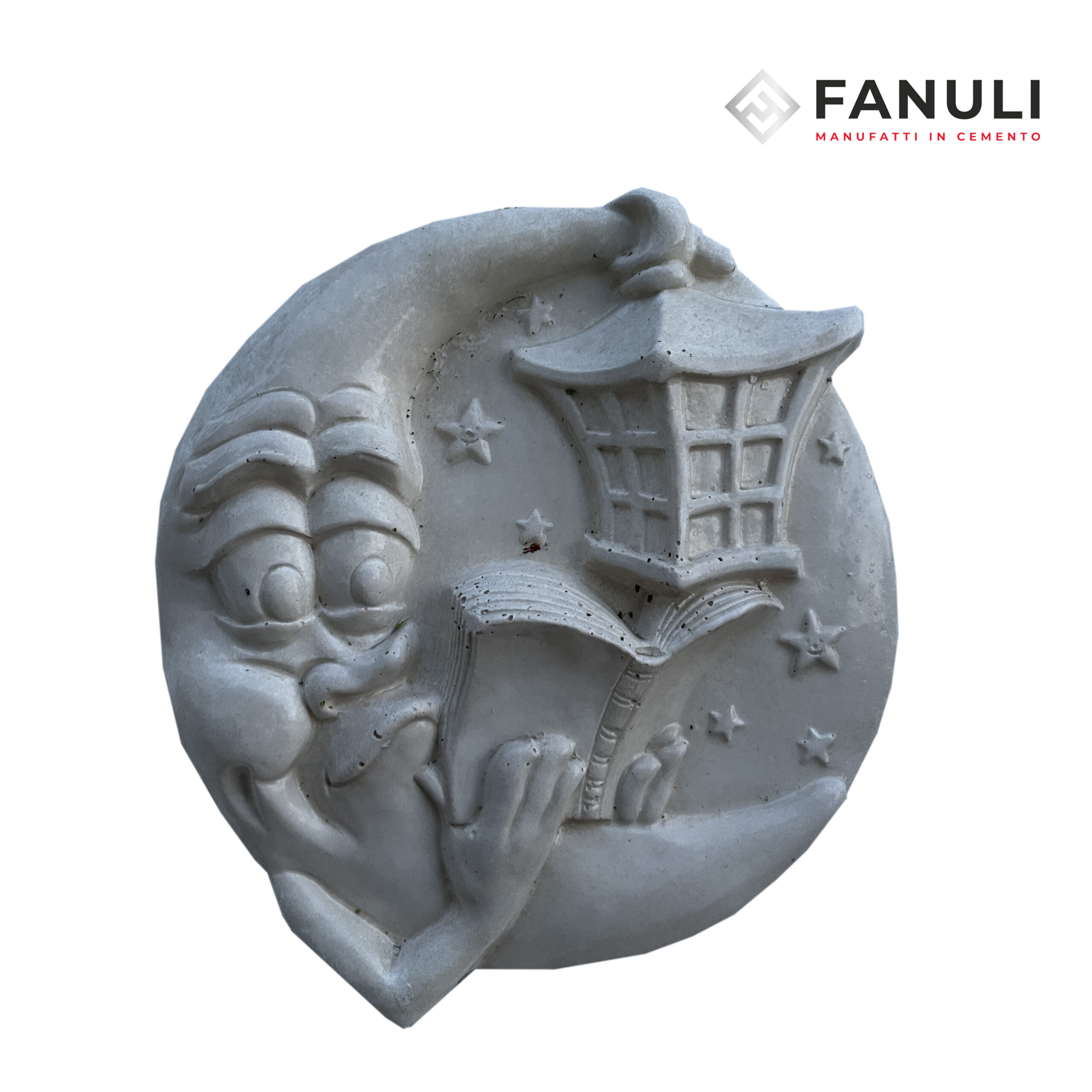 Bassorilievo raffigurante la luna con lanterna che legge un libro