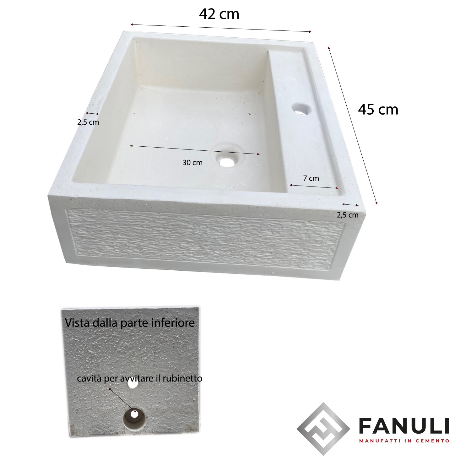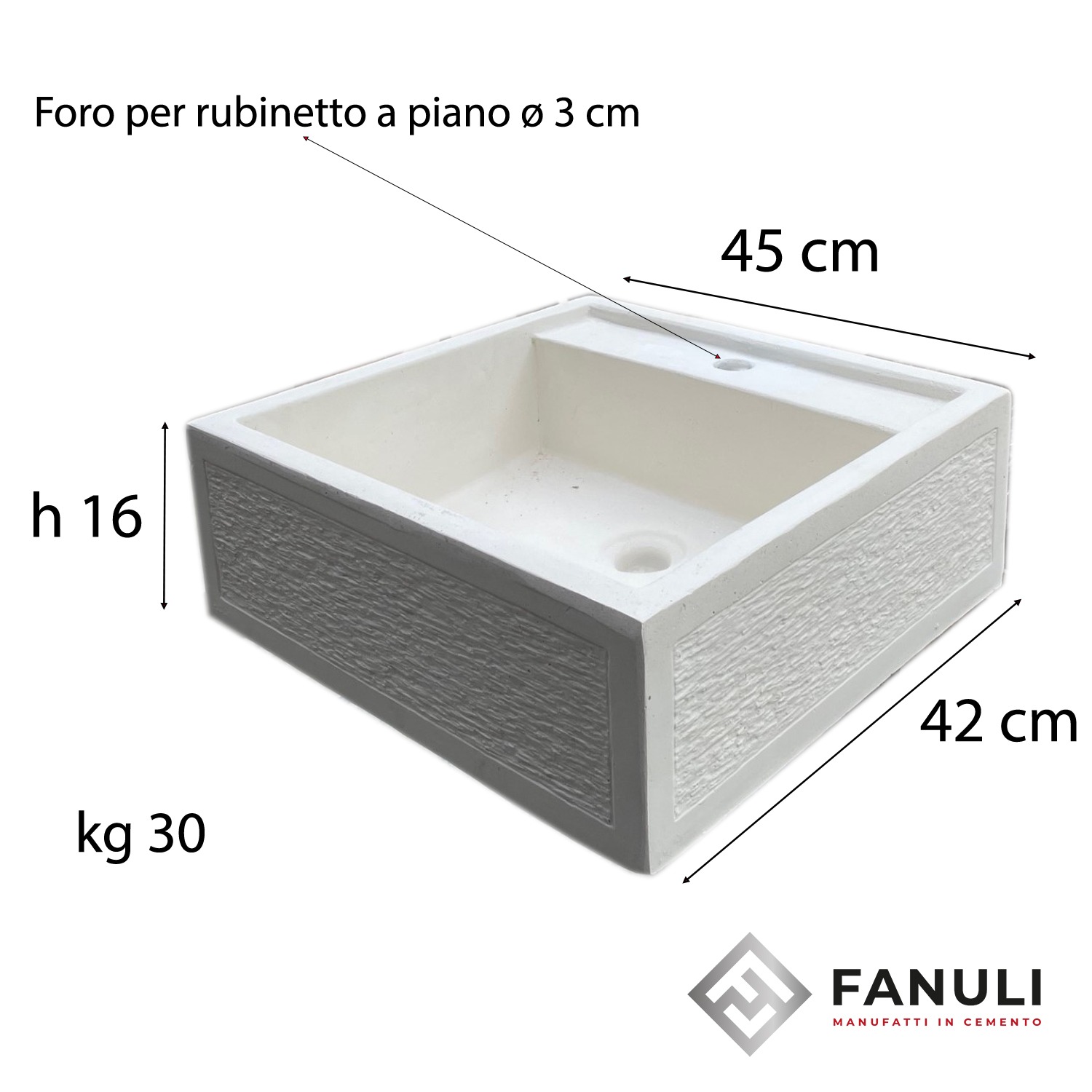 MISURE: Il lavandino misura in larghezza 45 cm x profondità 42 cm x Altezza 16 cm, il peso è di kg 30.