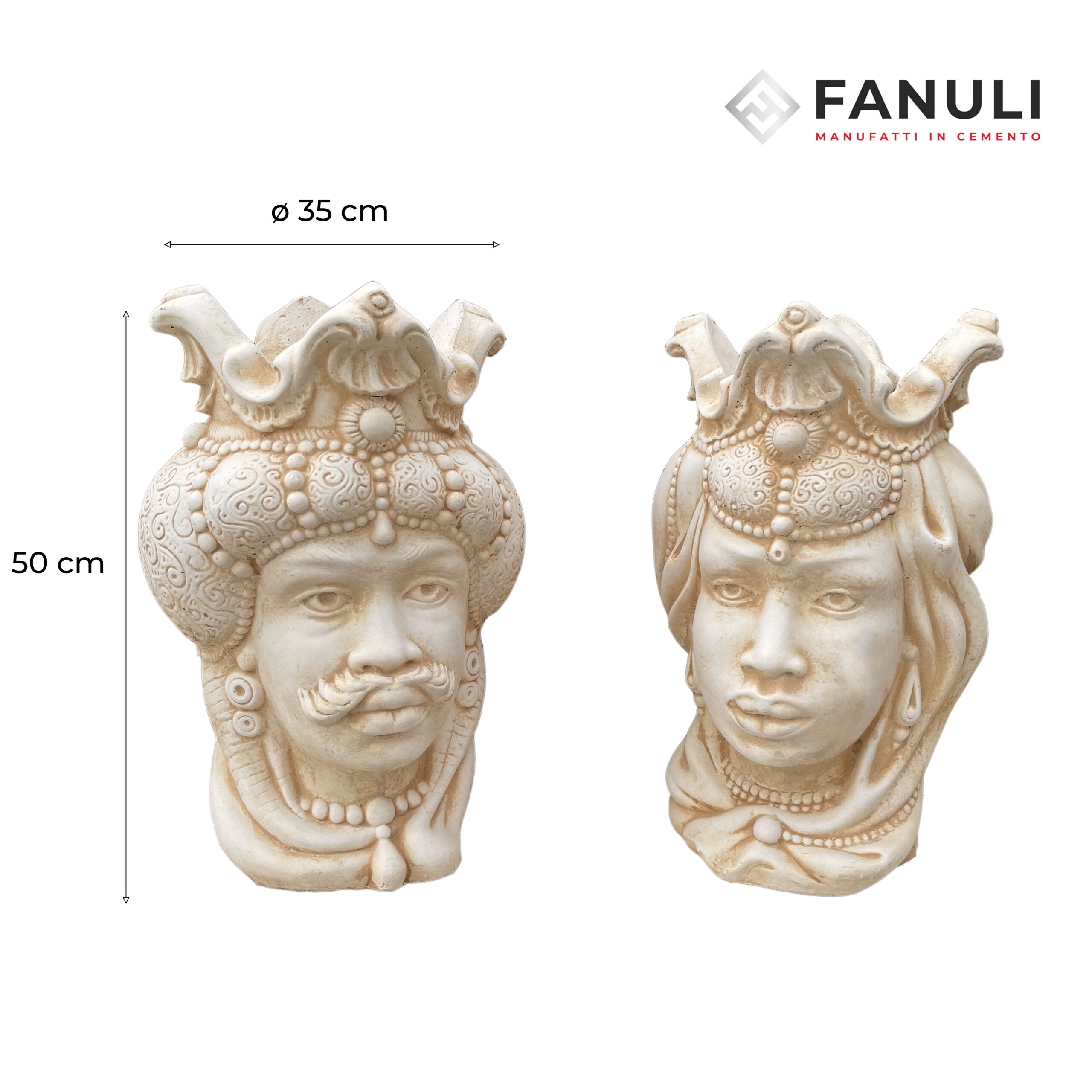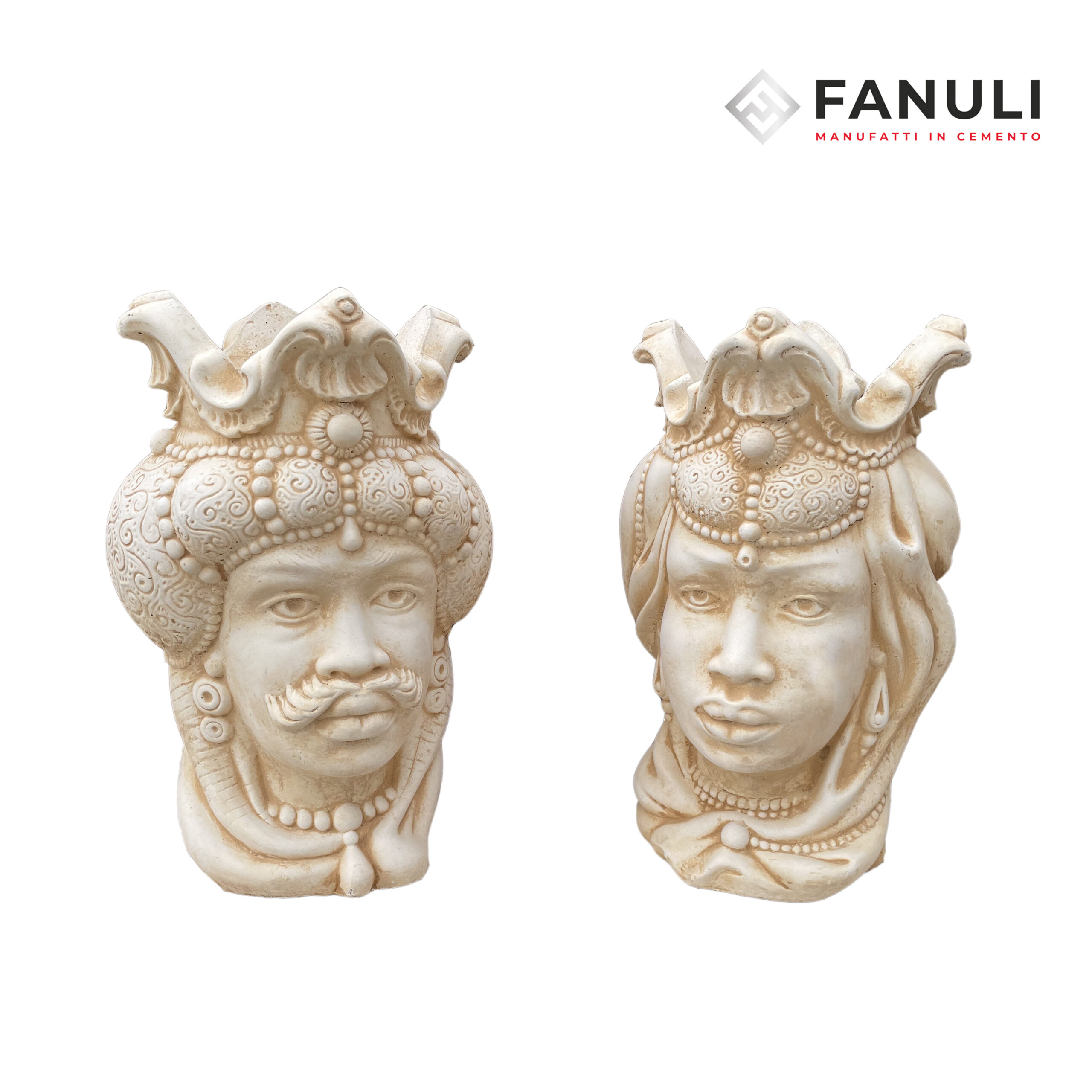 Coppia di teste di moro h 50 cm in cemento bianco color Nocciola: