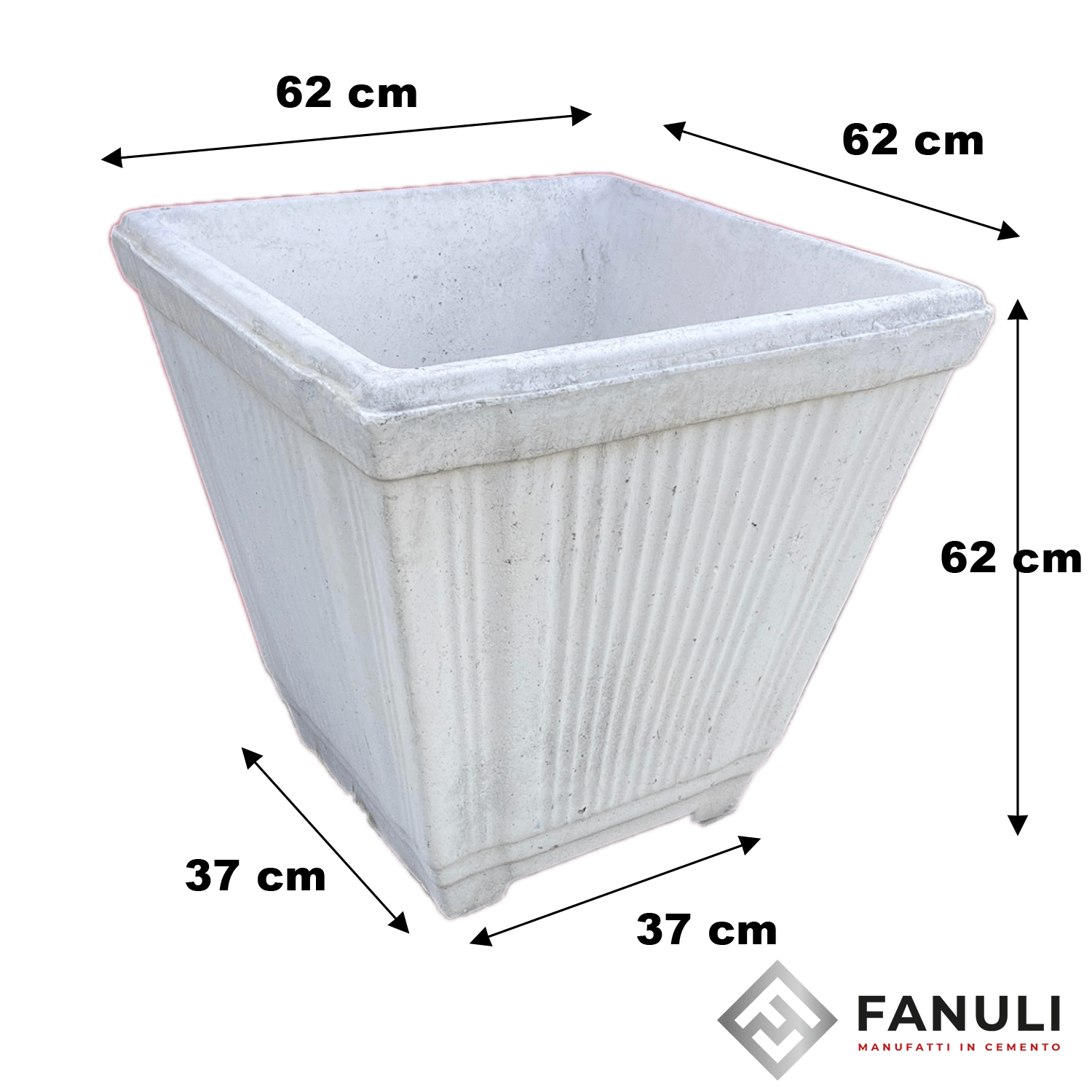 Vaso a “V” rigato Gigante h 62 x 62 x 62 cm cm in cemento bianco, vista la sua capienza è ideale per piantare alberi