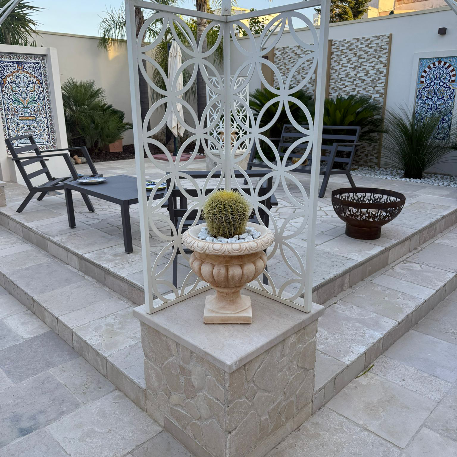 Materiale: Realizzato in cemento bianco e polvere di marmo, questo vaso è progettato per resistere a tutte le intemperie, garantendo una durata eccezionale nel tempo.