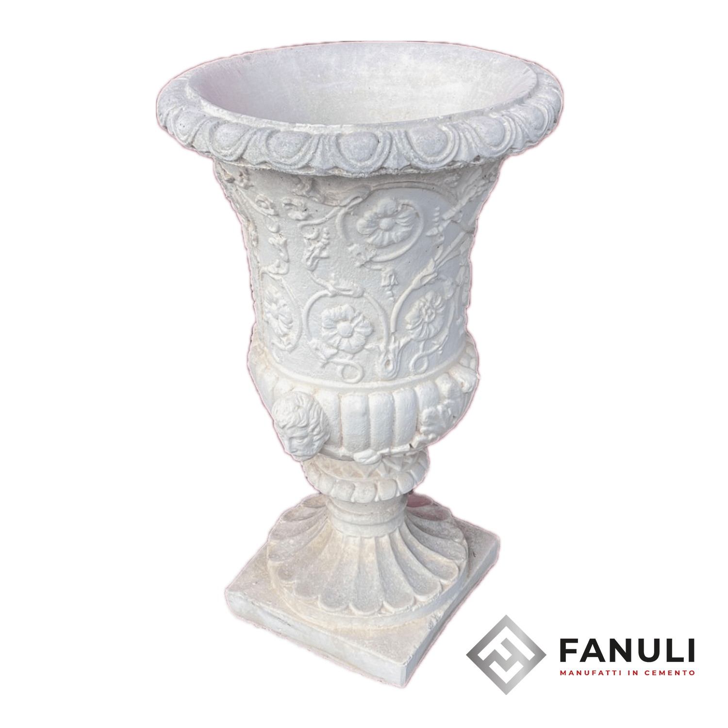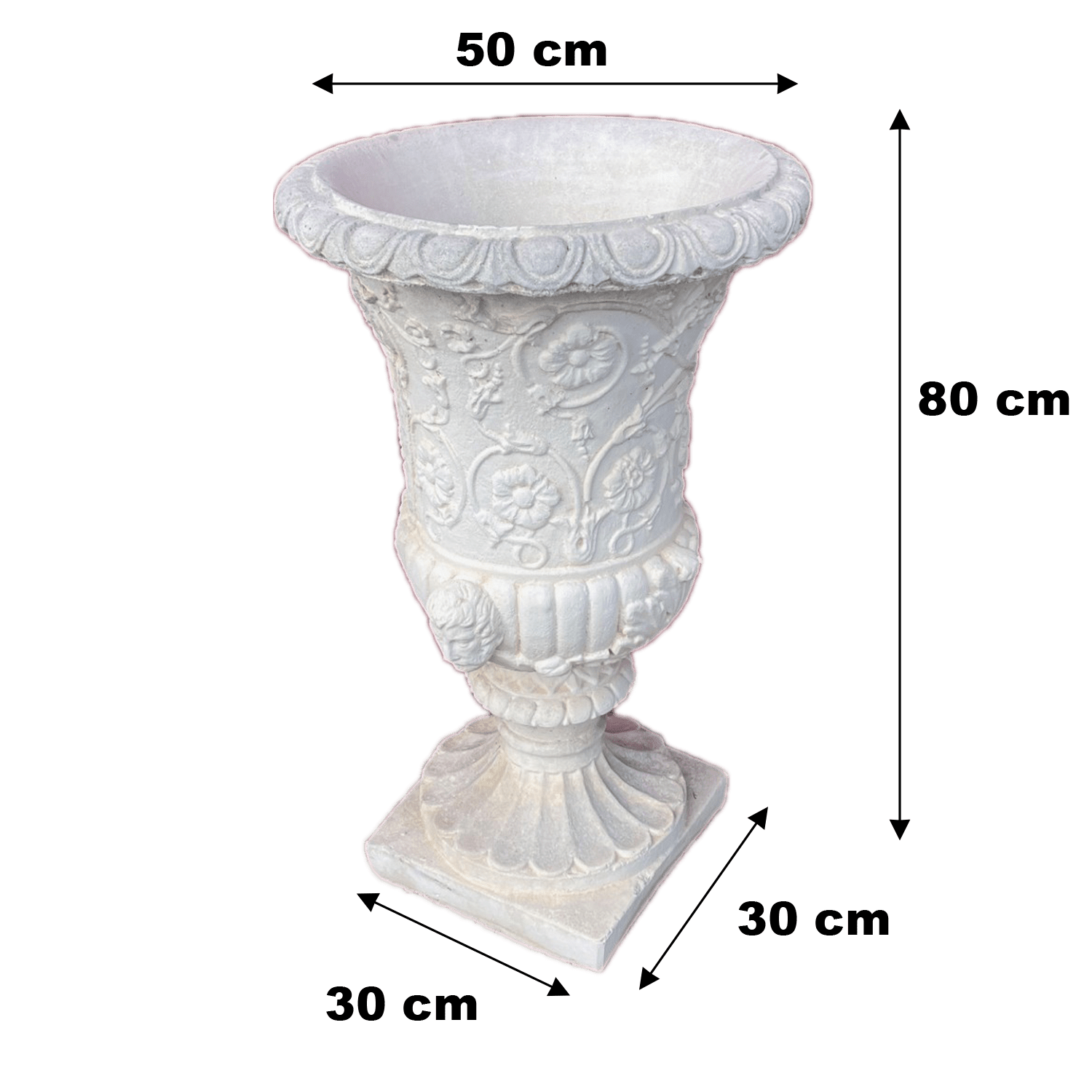 Materiale: Realizzato in cemento bianco e polvere di marmo, questo vaso è progettato per resistere a tutte le intemperie, garantendo una durata eccezionale nel tempo.