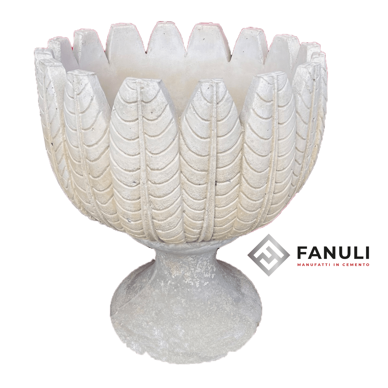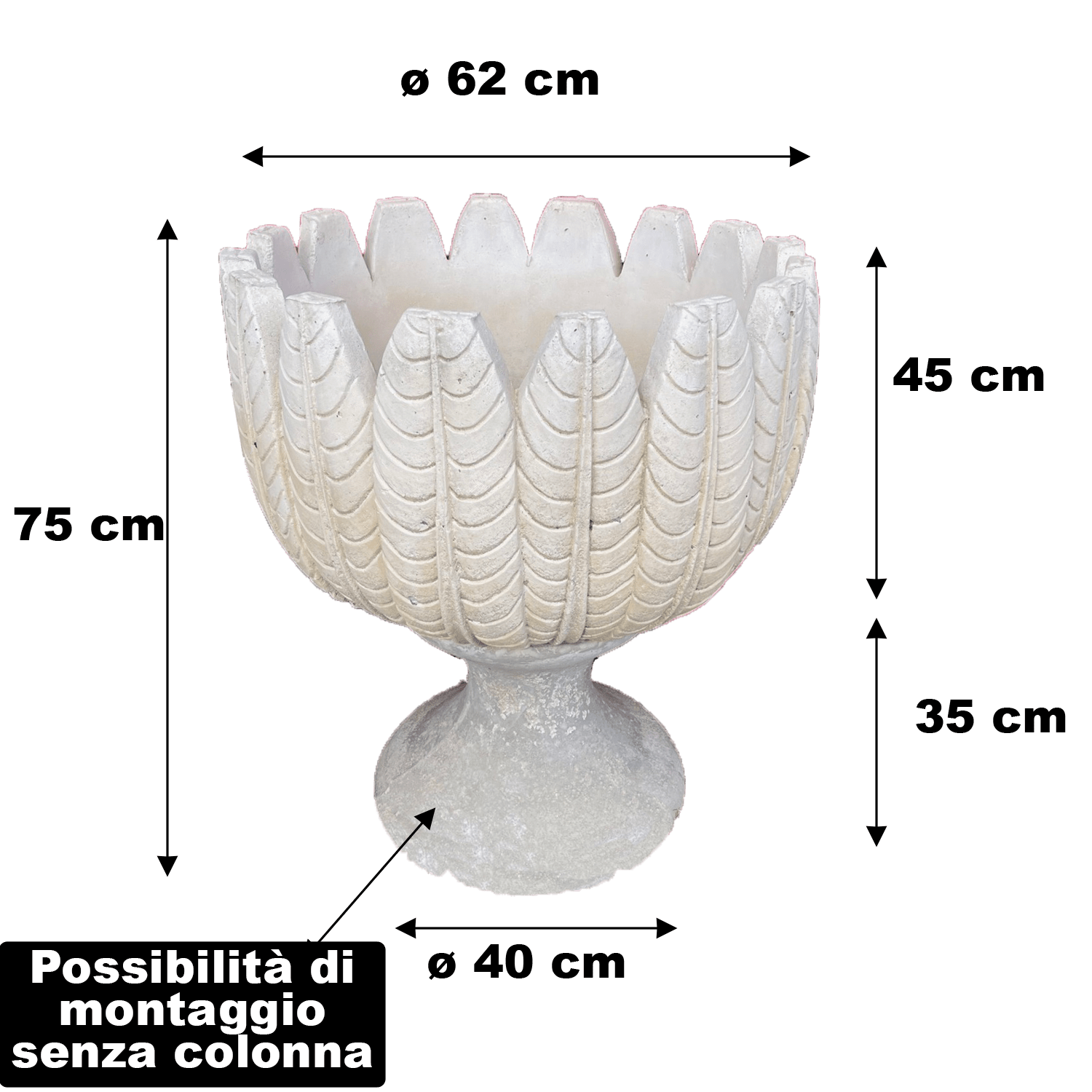 Vaso “Palmanova compreso piedistallo” h 75 x ø 62 cm a Calice in Cemento Bianco e Polvere di Marmo