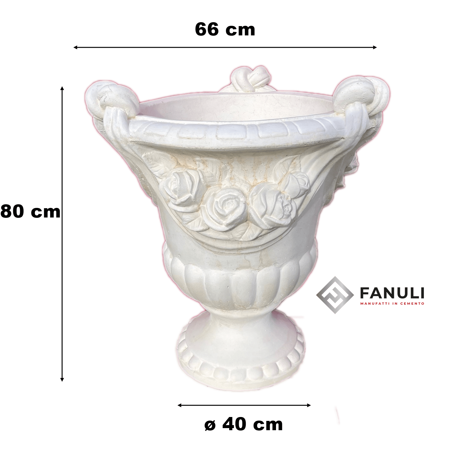 Materiale: Realizzato in cemento bianco e polvere di marmo, questo vaso è progettato per resistere a tutte le intemperie, garantendo una durata eccezionale nel tempo.