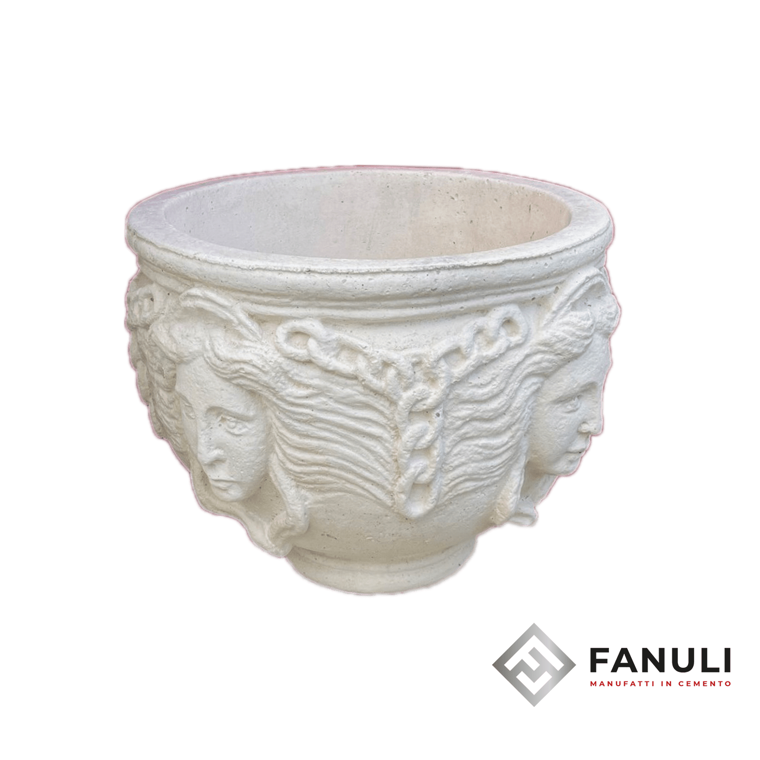 Vaso “Quattro Stagioni” Piccolo h 30 x ø 36,5 cm in Cemento Bianco e Polvere di Marmo.