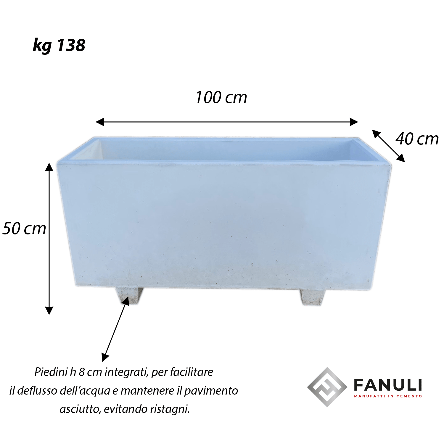 Vaso Rettangolare liscio 100 x 40 x h 50 in Cemento Bianco, kg 138