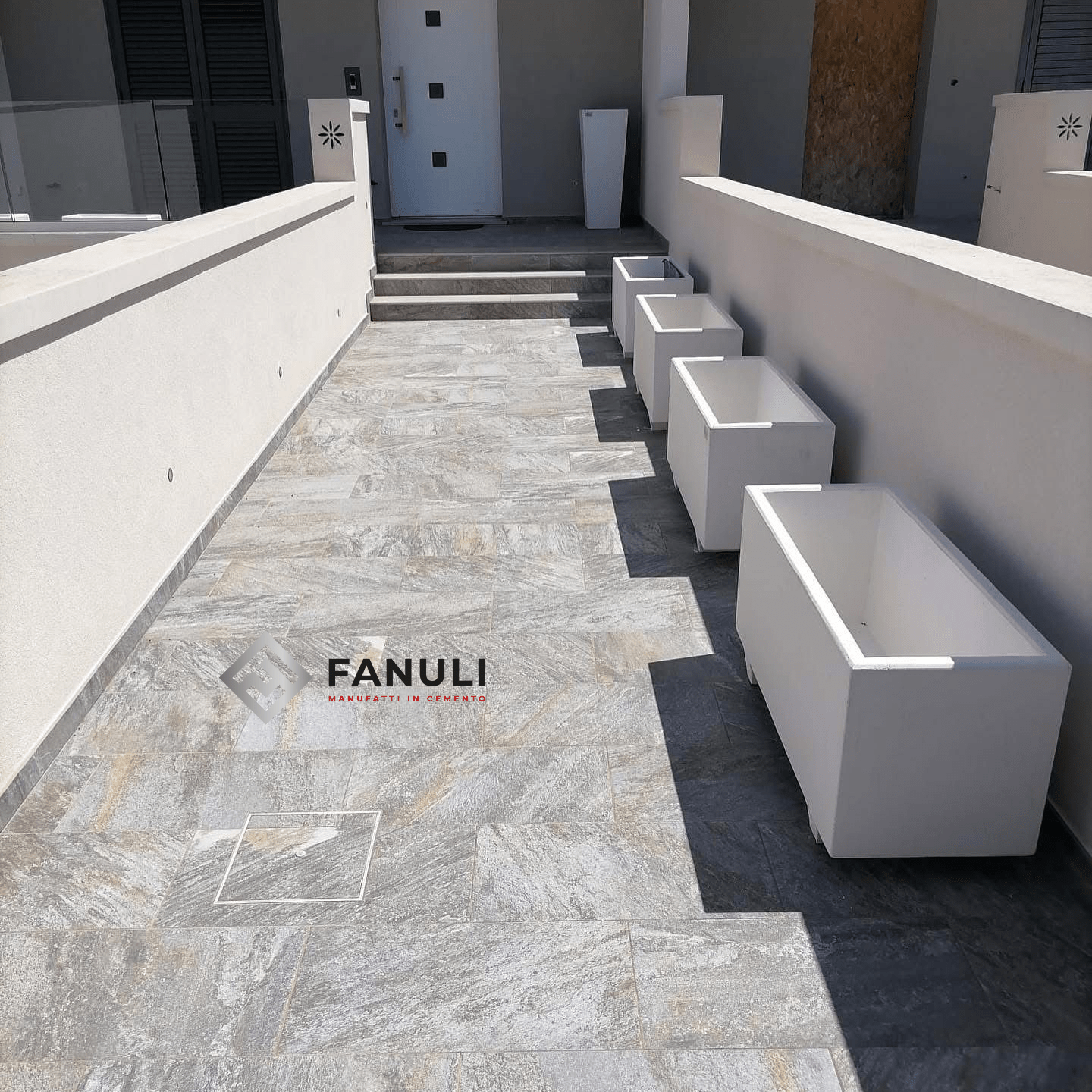 Materiale: Questo vaso rettangolare è realizzato in cemento bianco senza ferro, garantendo robustezza e durabilità.