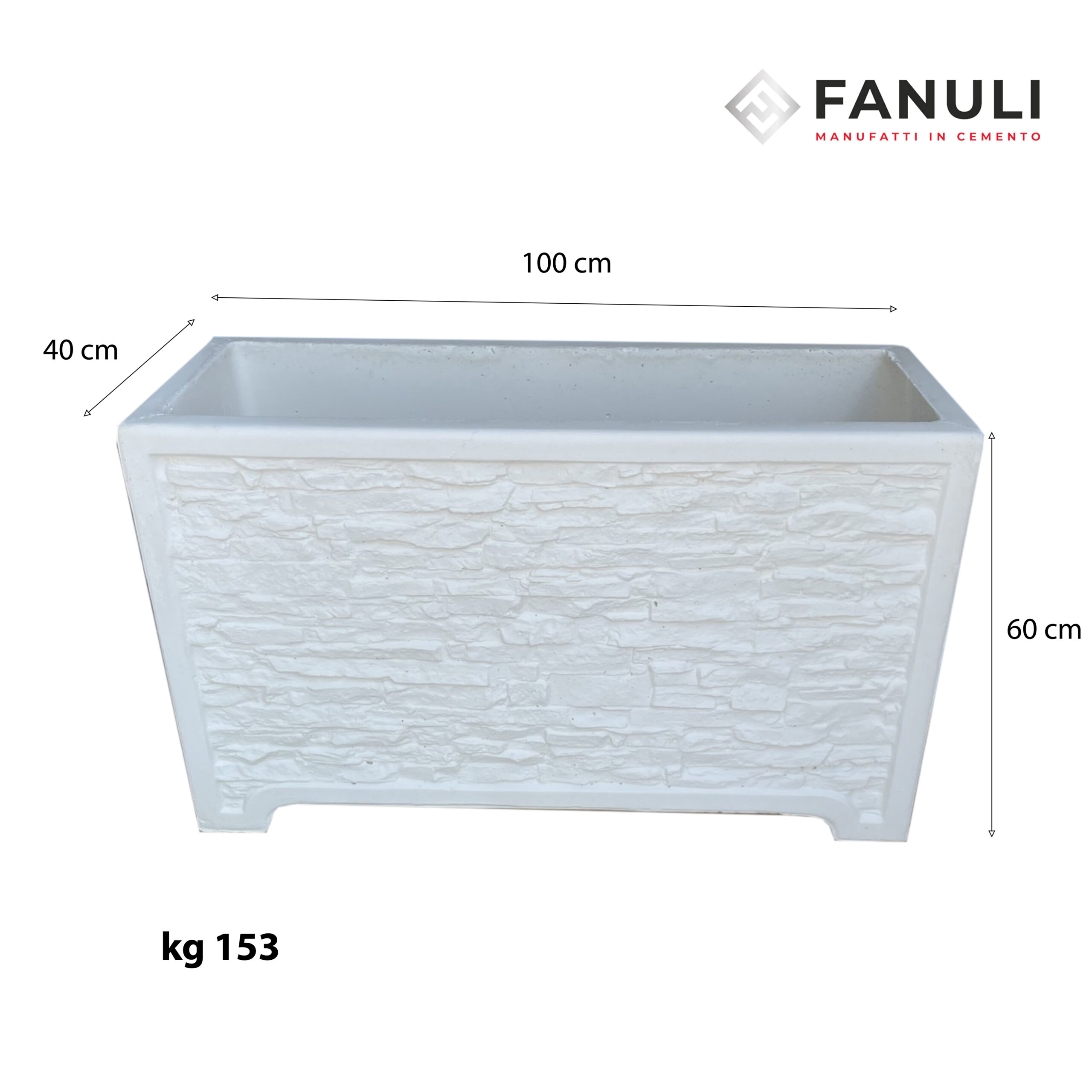 Vaso Rettangolare PETRA 100 x 40 x h 60 in Cemento Bianco, kg 153